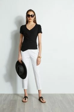 All eyes are on the asymmetric neckline where Silk Satin draped into a pearl detailed metal bar. The pleated cuffs add extra edge to this shirt and make it a perfect piece for dressing up or down.Â