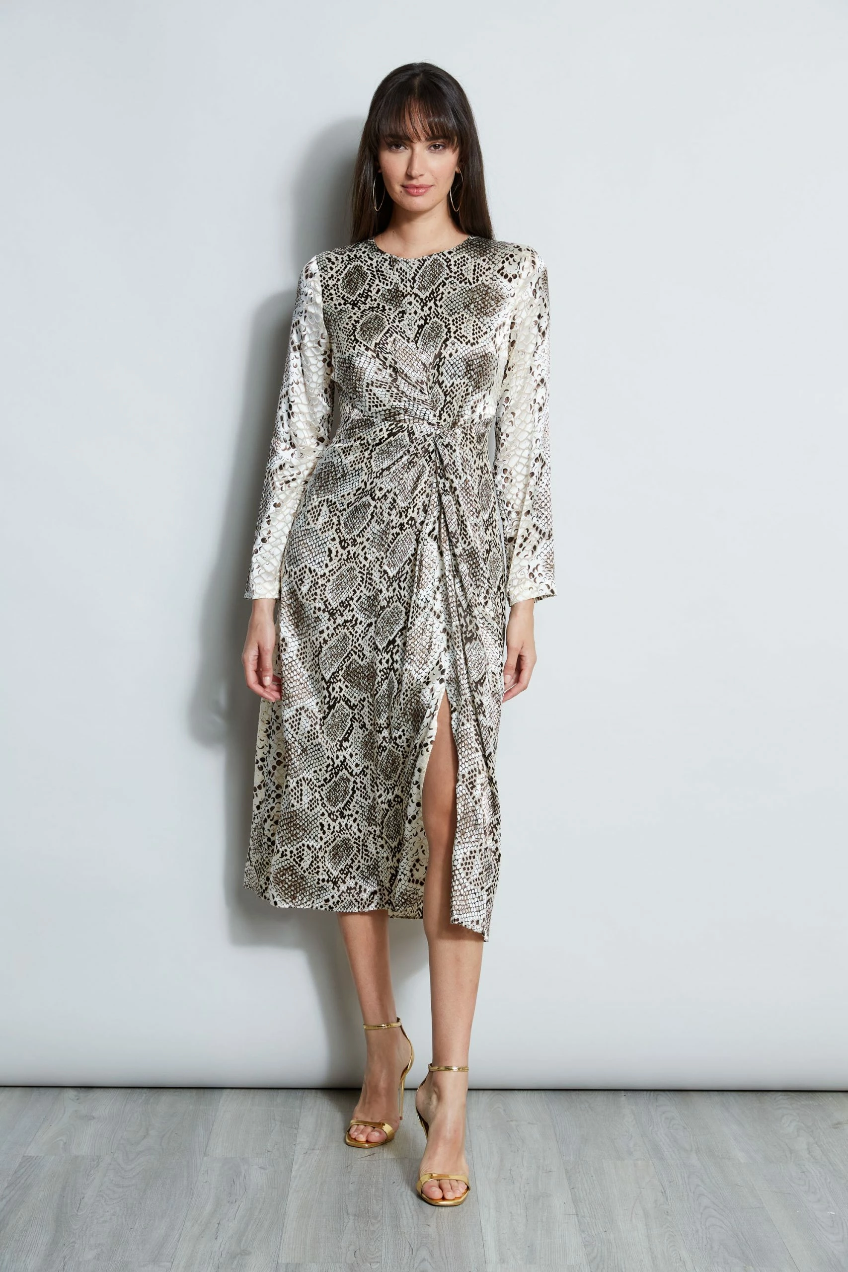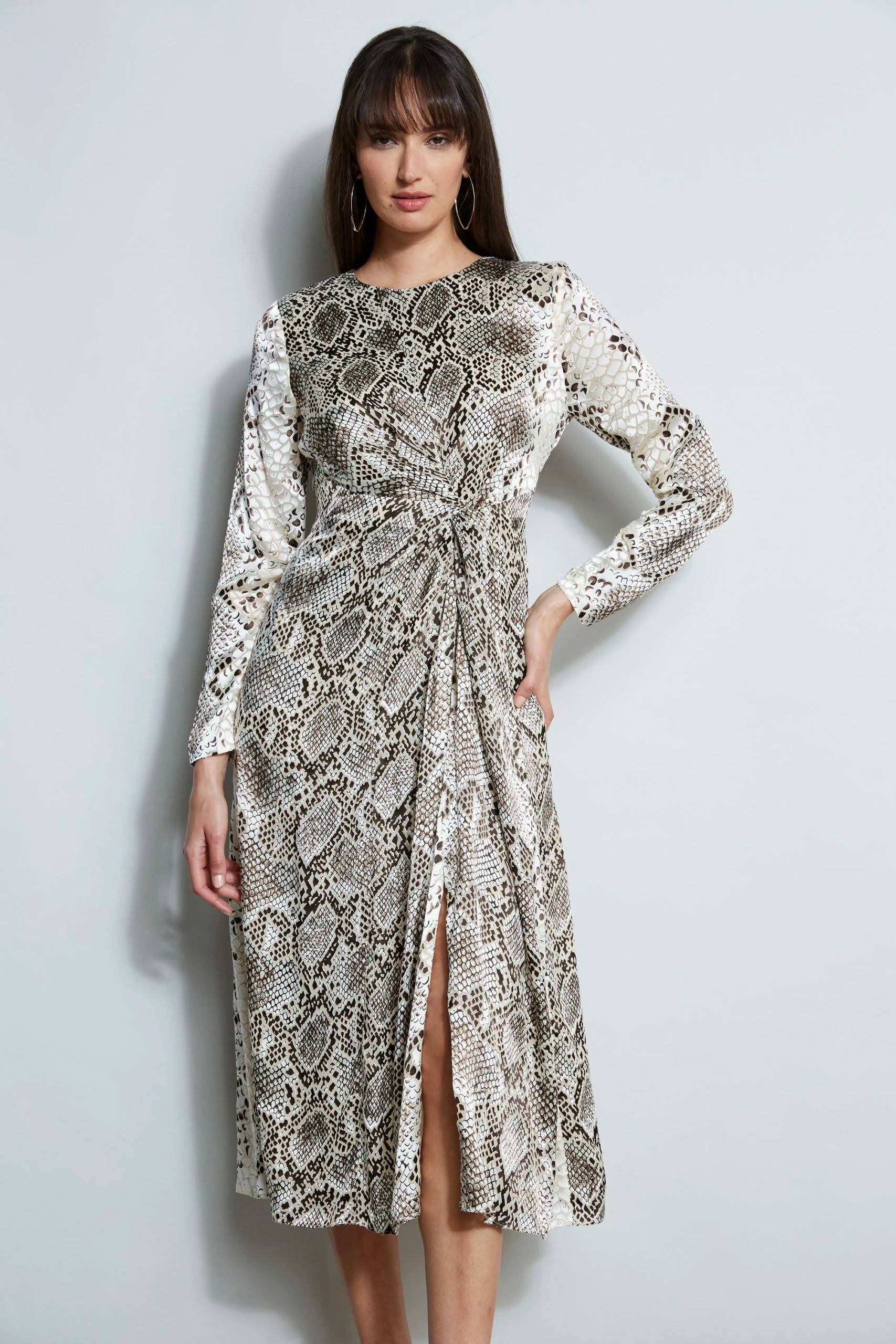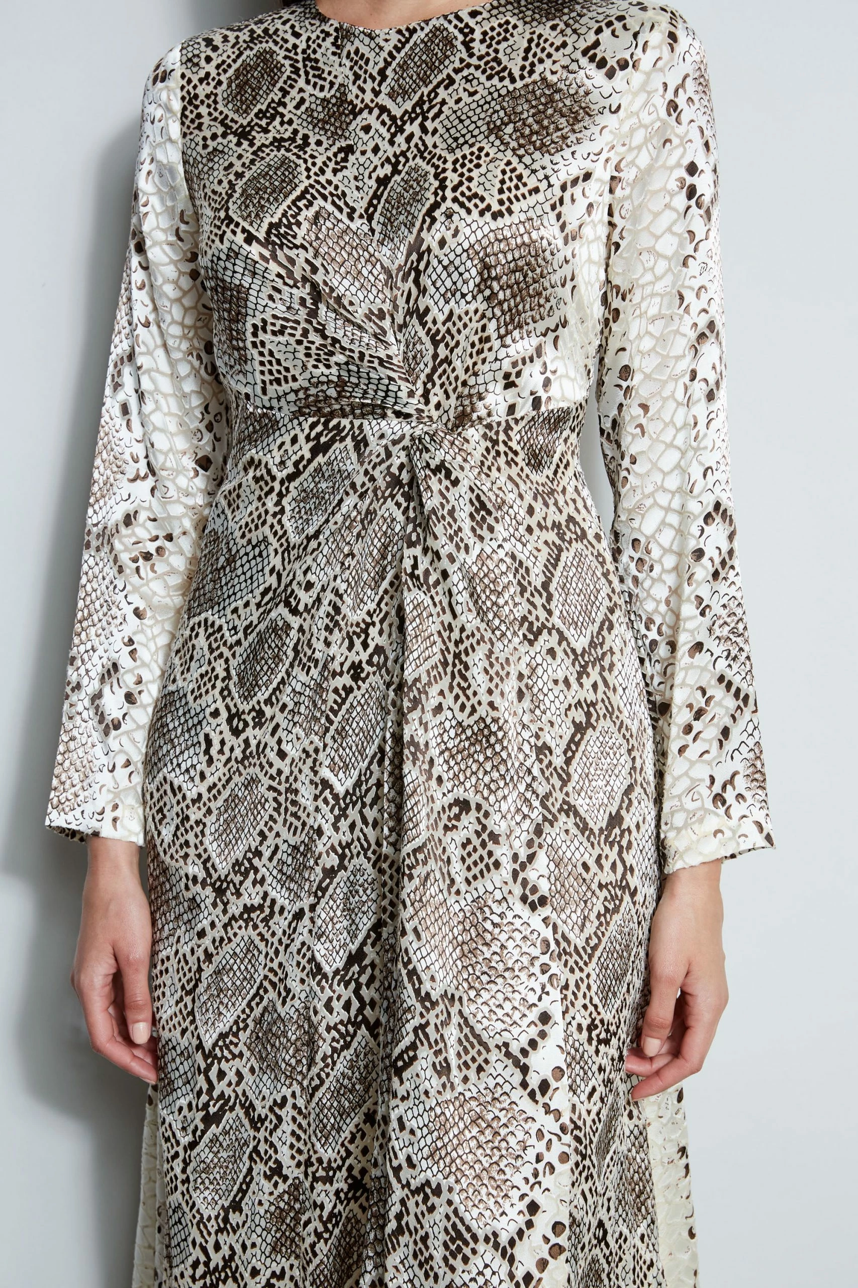- Long Sleeve Twisted Python Printed Dress