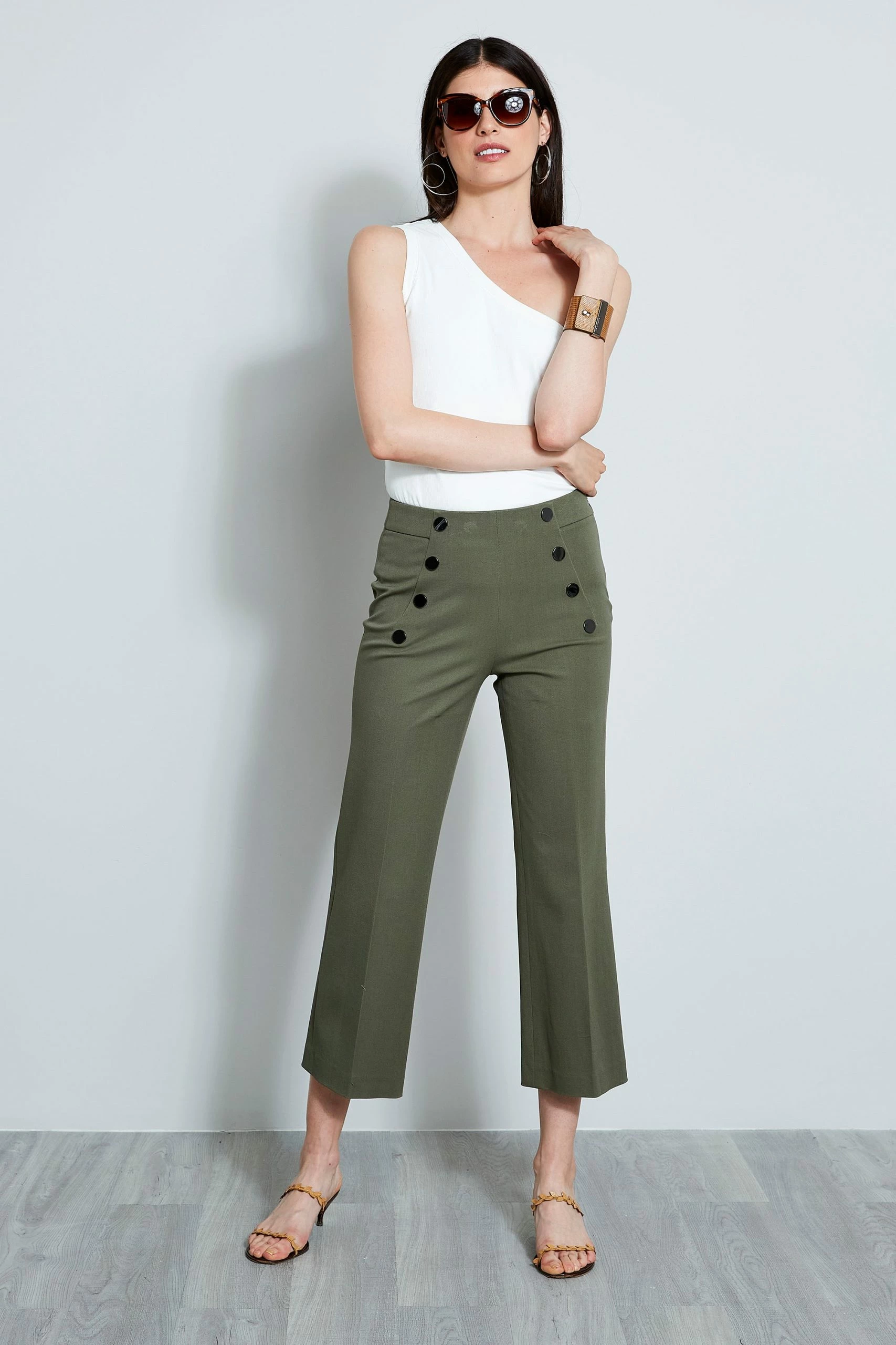 - Stretch Cotton Blend Cropped Button Sailor Pant