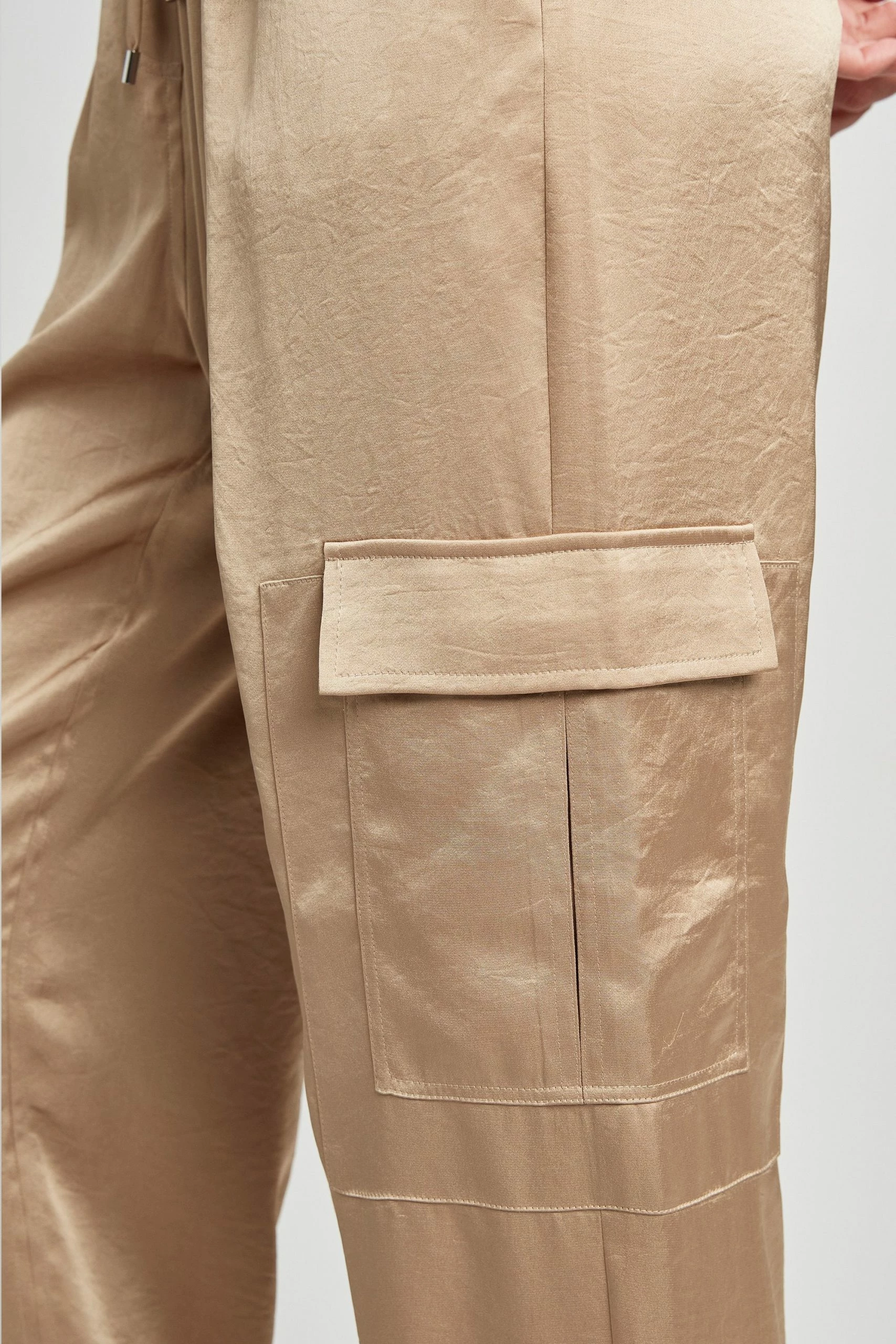 Modern Washed Satin lends a casual chic expression to our Cargo Pant. The relaxed fit, drawstring waist & rib knit cuffs are the definition of effortless sophistication.