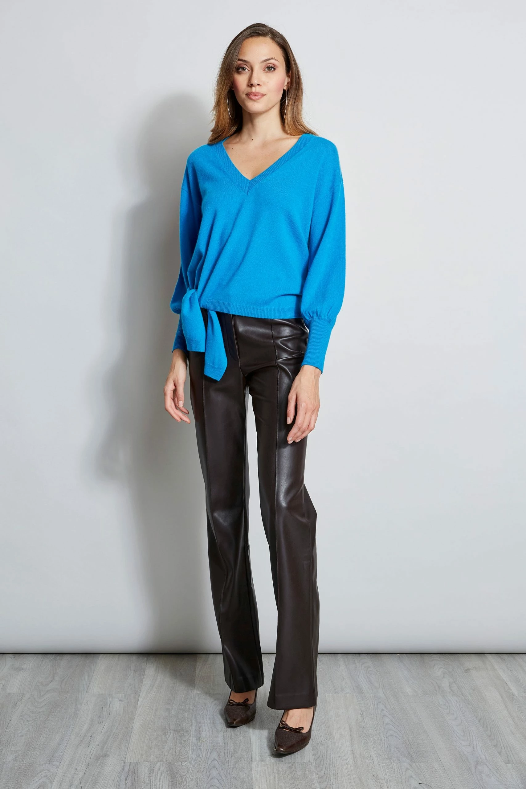 - Long Sleeve V-Neck Cashmere Blend Pullover Sweater with Side Tie