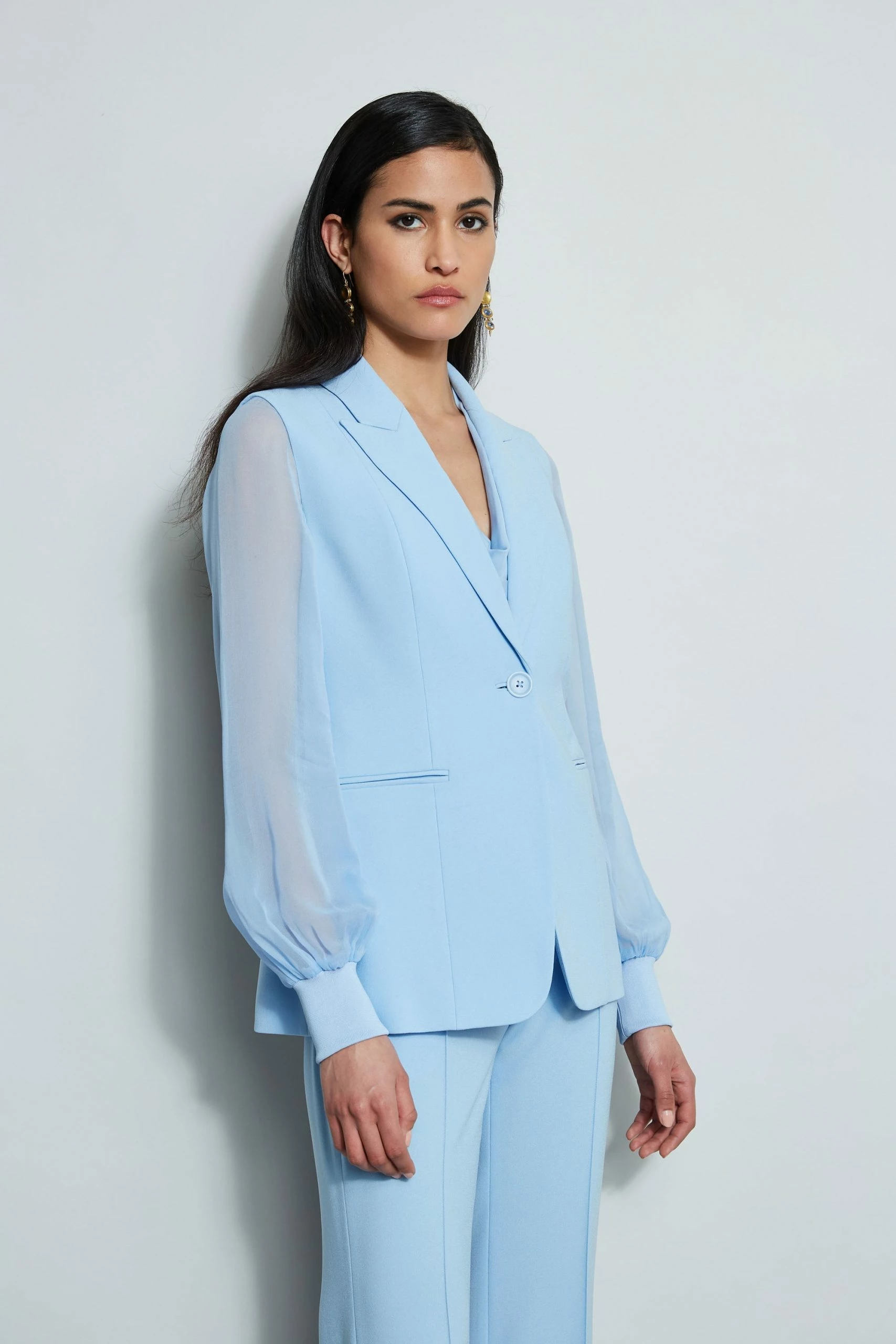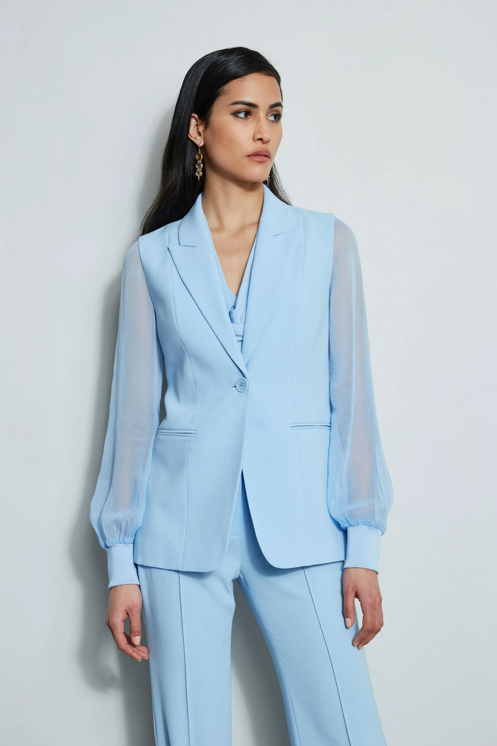 - Single Button Slim Fit Blazer with Silk Chiffon Sleeves