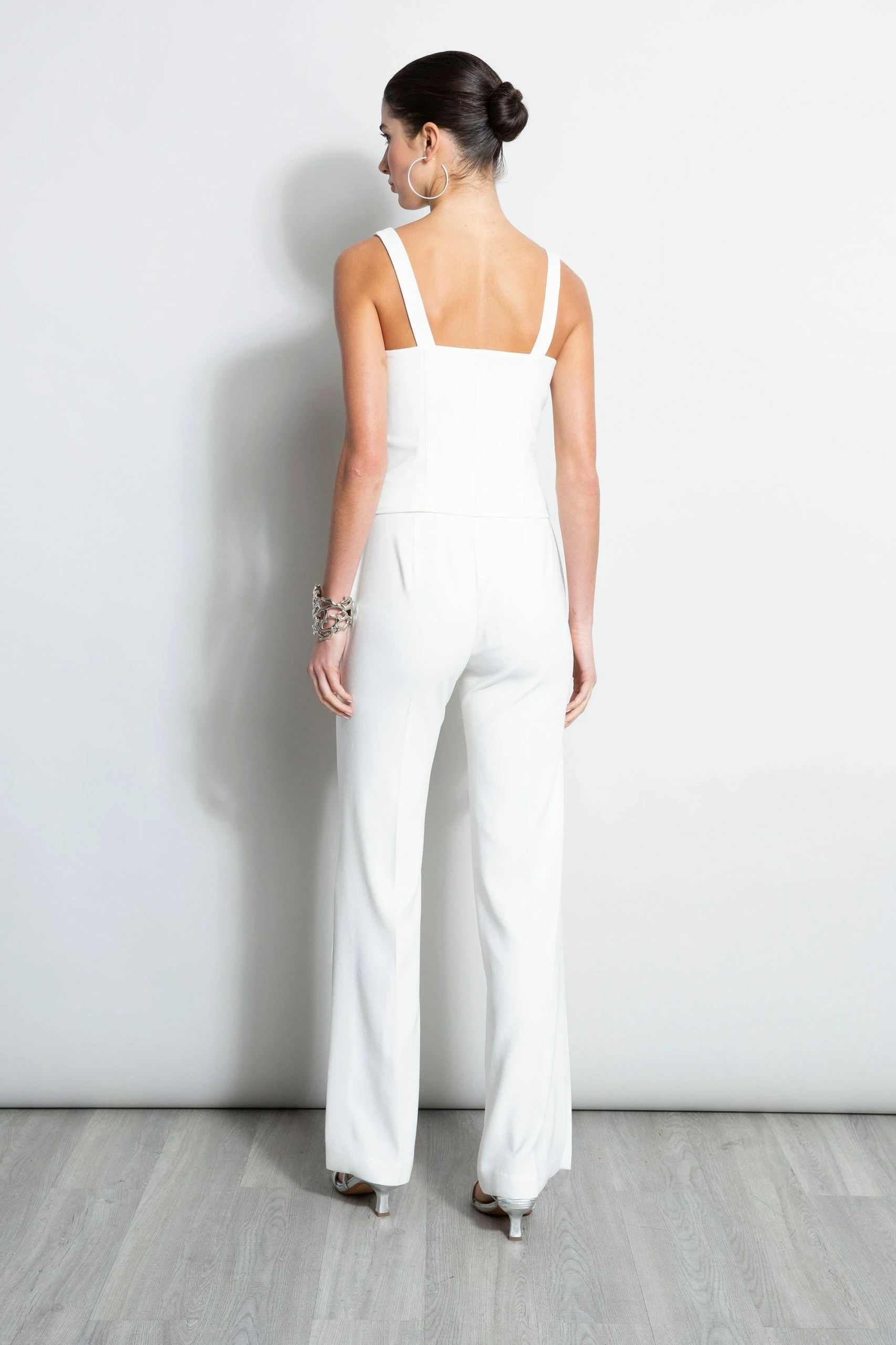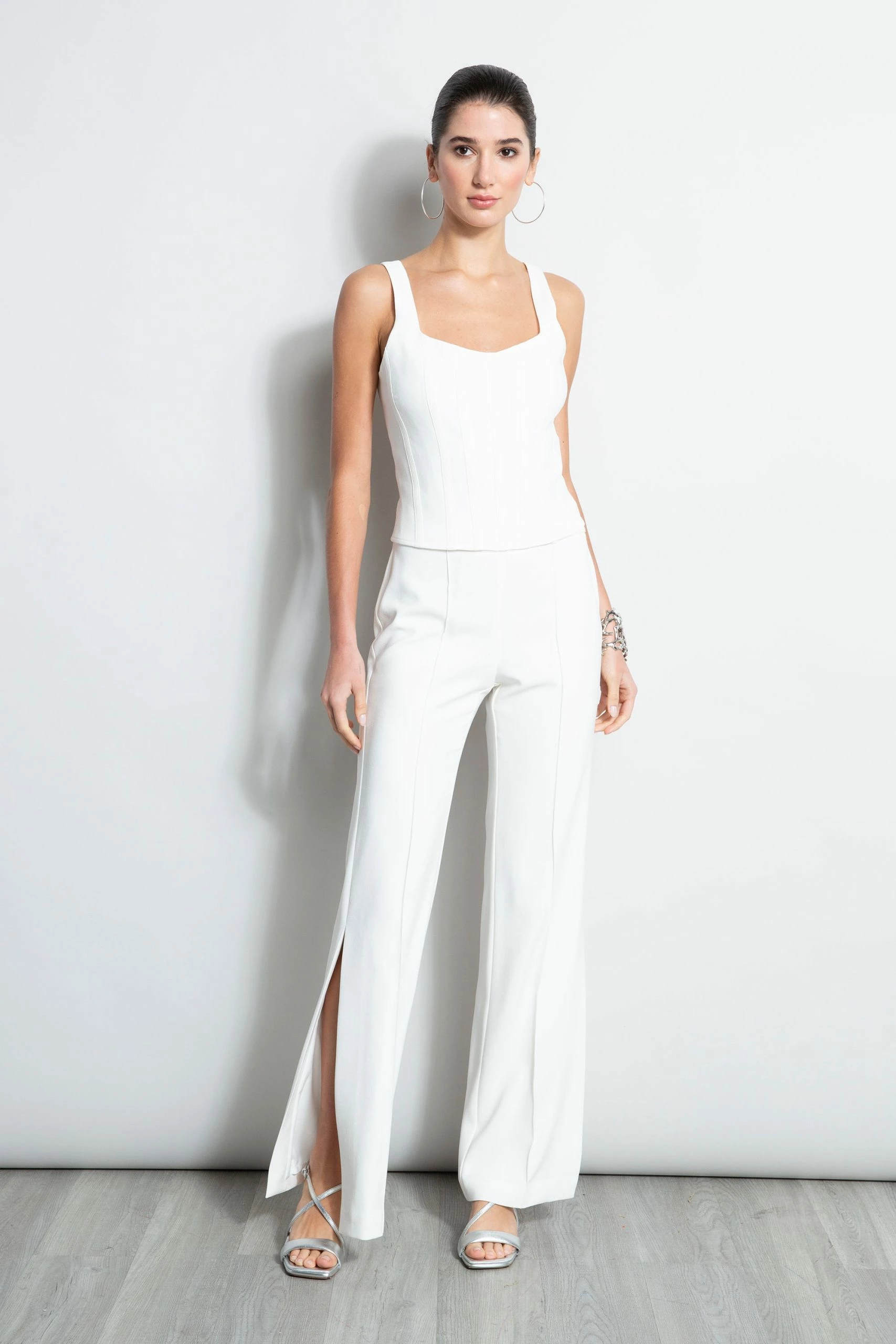 Meet the season’s must have corset. Elie designed it in his signature Fluid Crepe with a modern contour neckline & seams. It’s for layering under your favorite blazer or wearing on its own with our overlay pants. Wear it over your pants or tuck it in.Â