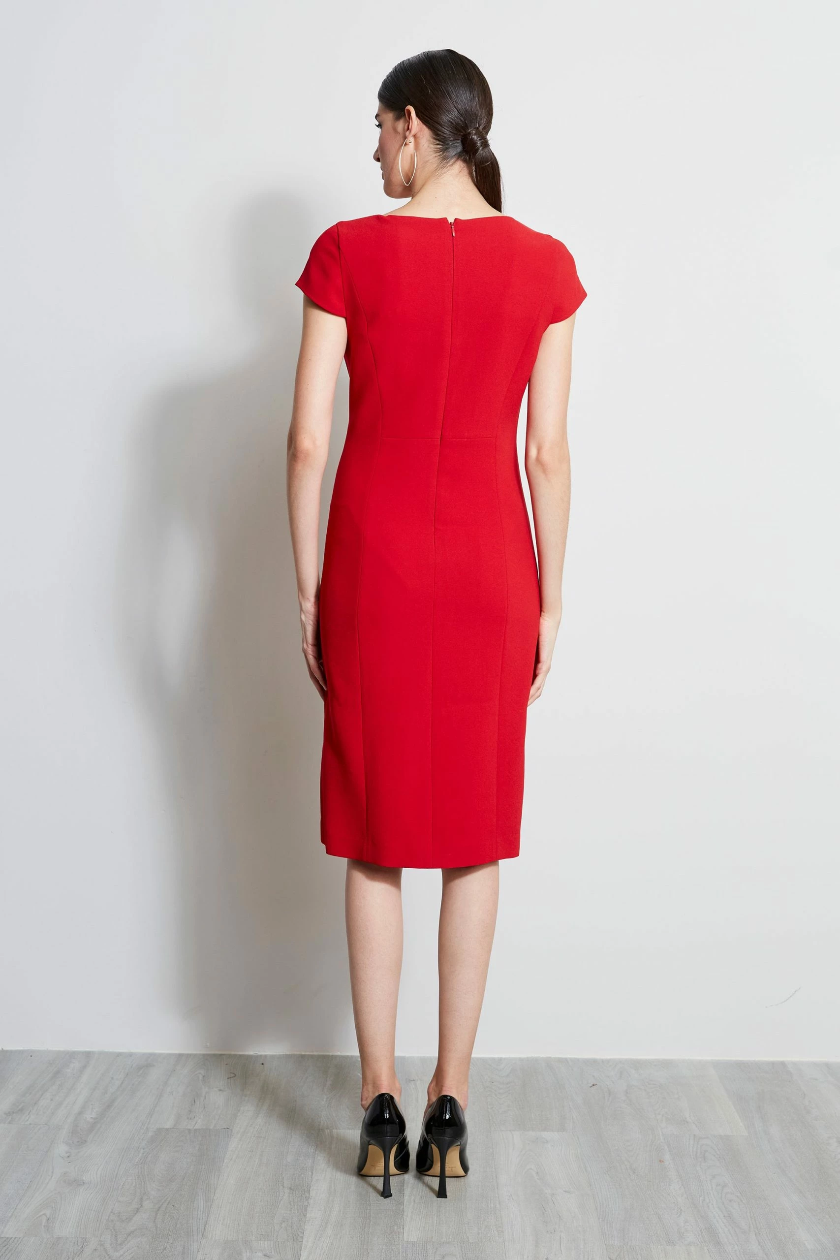 All eyes are on the romantic cut-out embroidered neckline of our body skimming Crepe dress. The cap sleeve bodycon, knee-length silhouette flatters every curve, while the intricate cut out embroidery adds the right touch of femininity to this perfect seasonless dress.