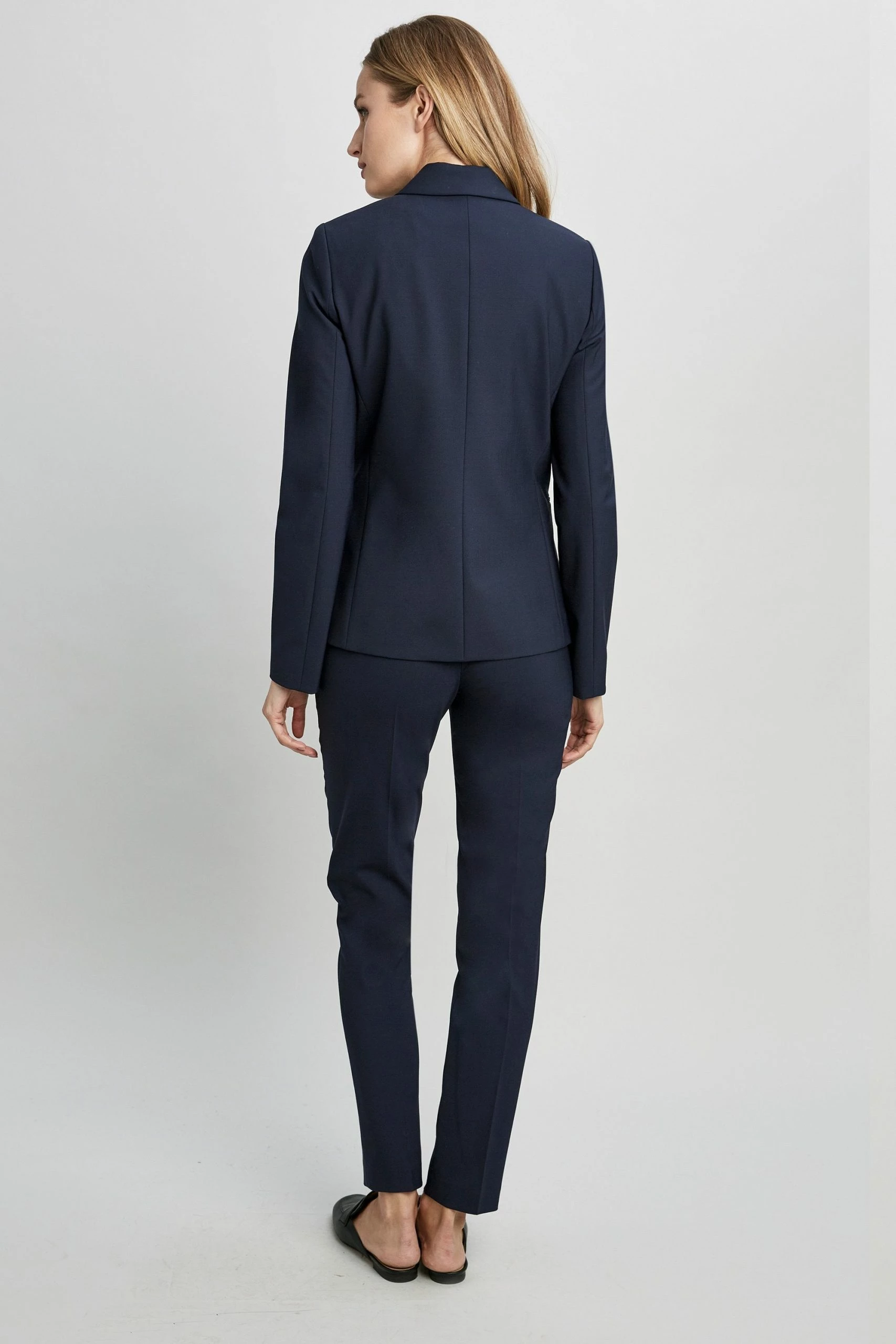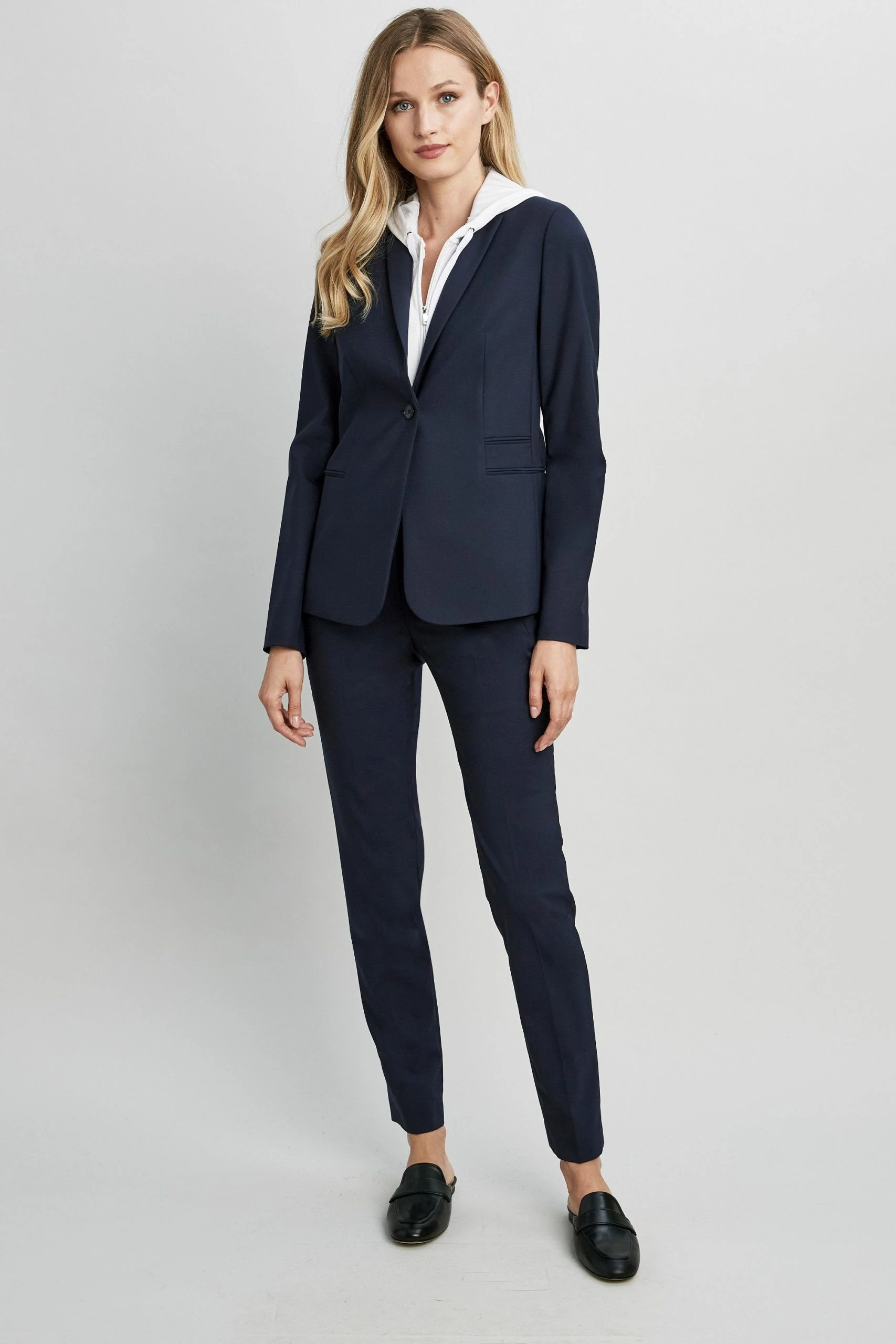 - Single Button Wool-Blend Blazer with Front Welt Pockets & Notched Lapel