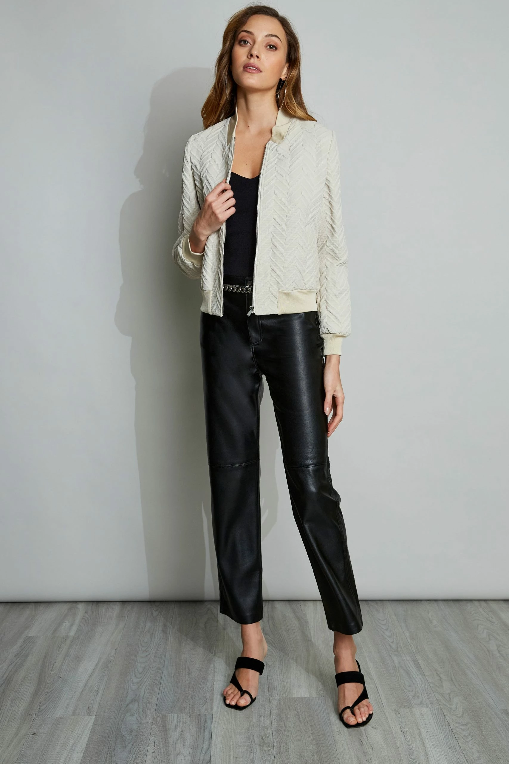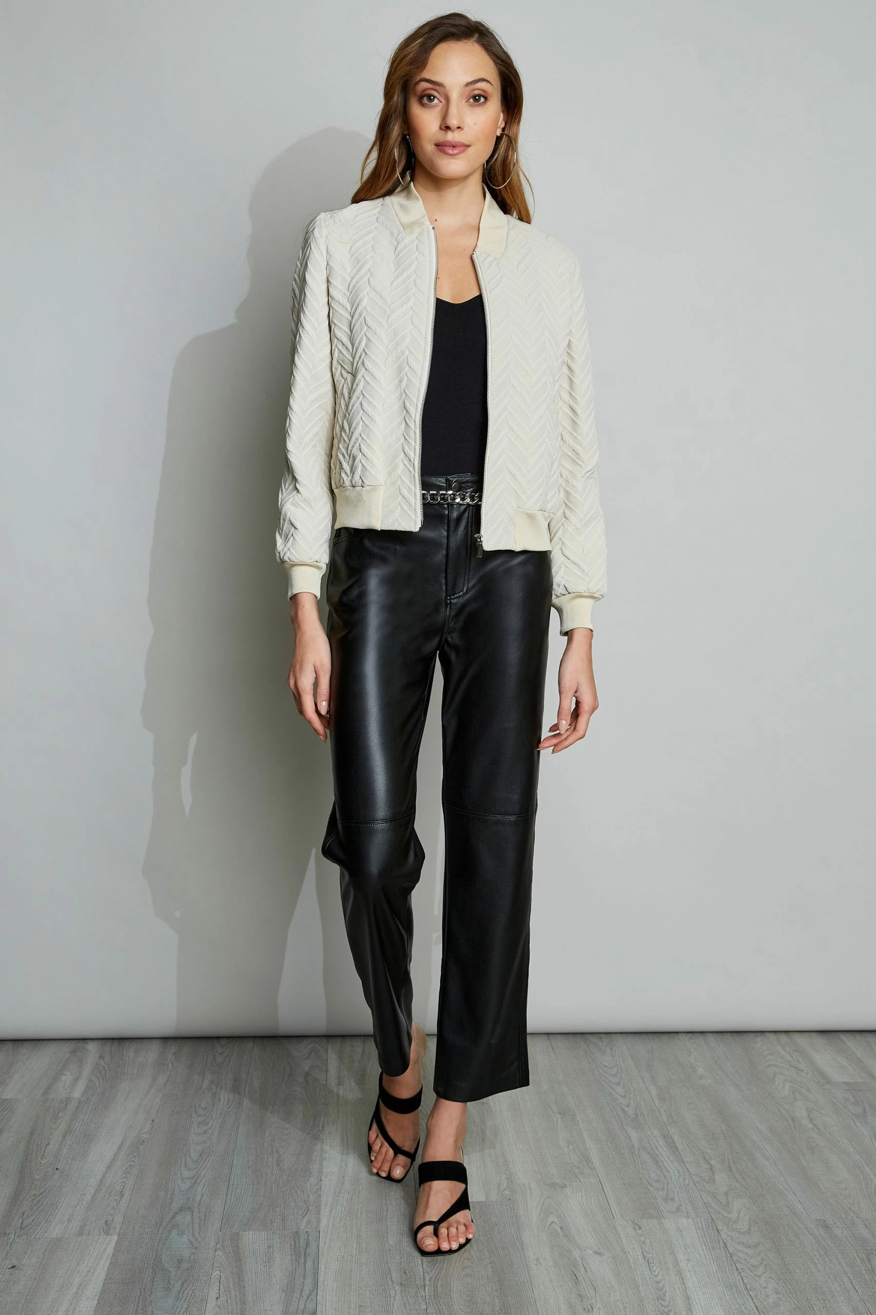 Fall in love with the chic texture of our Jacquard Bomber. Its graphic Jacquard Herringbone fabric was woven for us in Italy. The knitted trim & graphic zipper lend a sporty vibe. Wear it dressed up over a dress or down over our favorite jean.ÂÂ