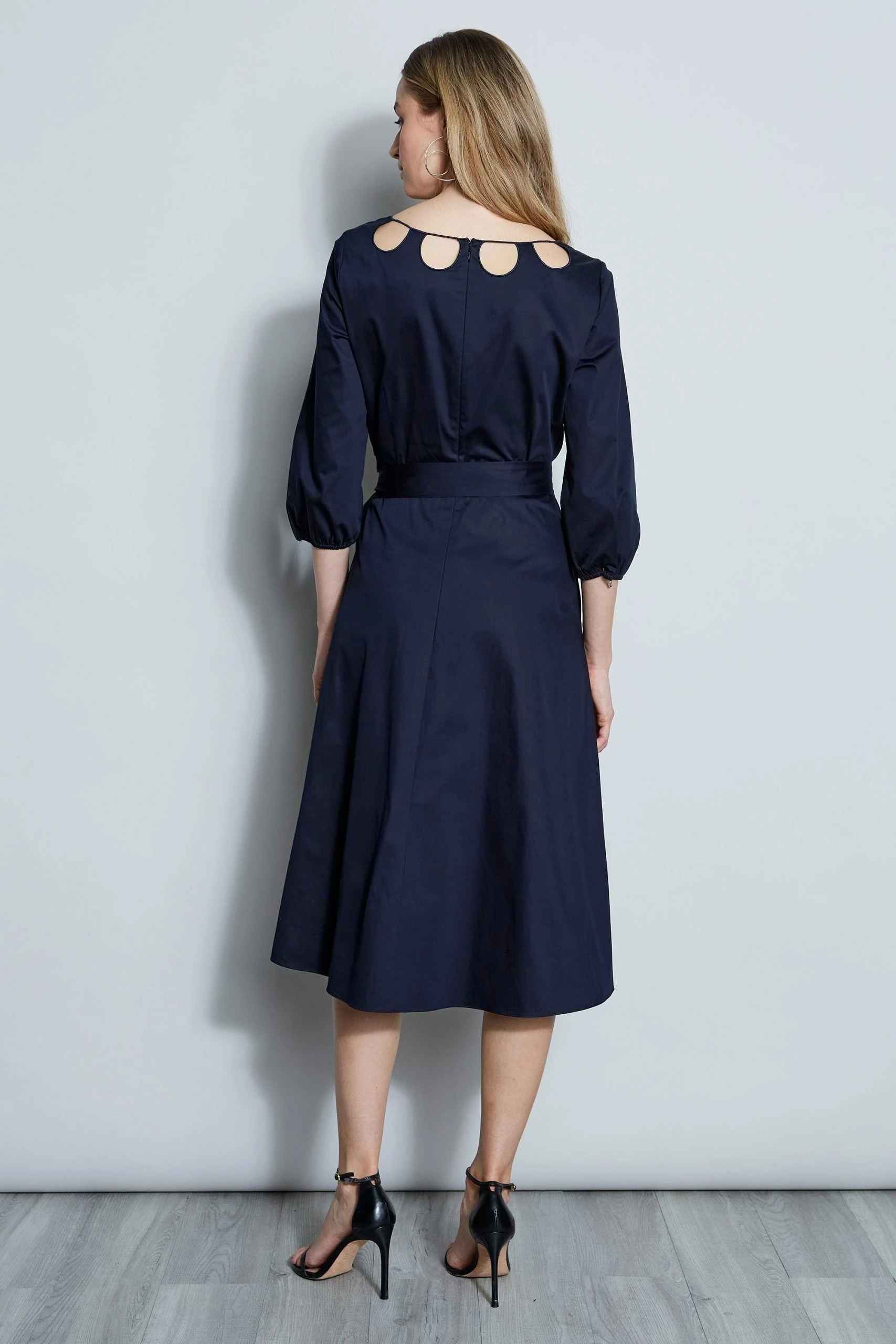 Just as feminine as it is effortless, our cotton poplin midi-dress comes alive with intricate details and a breezy skirt. Keyhole cutouts detail the neckline, while a self-sash accentuates the waist. With three-quarter sleeves and fuller skirt, you will love the way you feel in this dress – the Keyhole Dress is a dream come true.