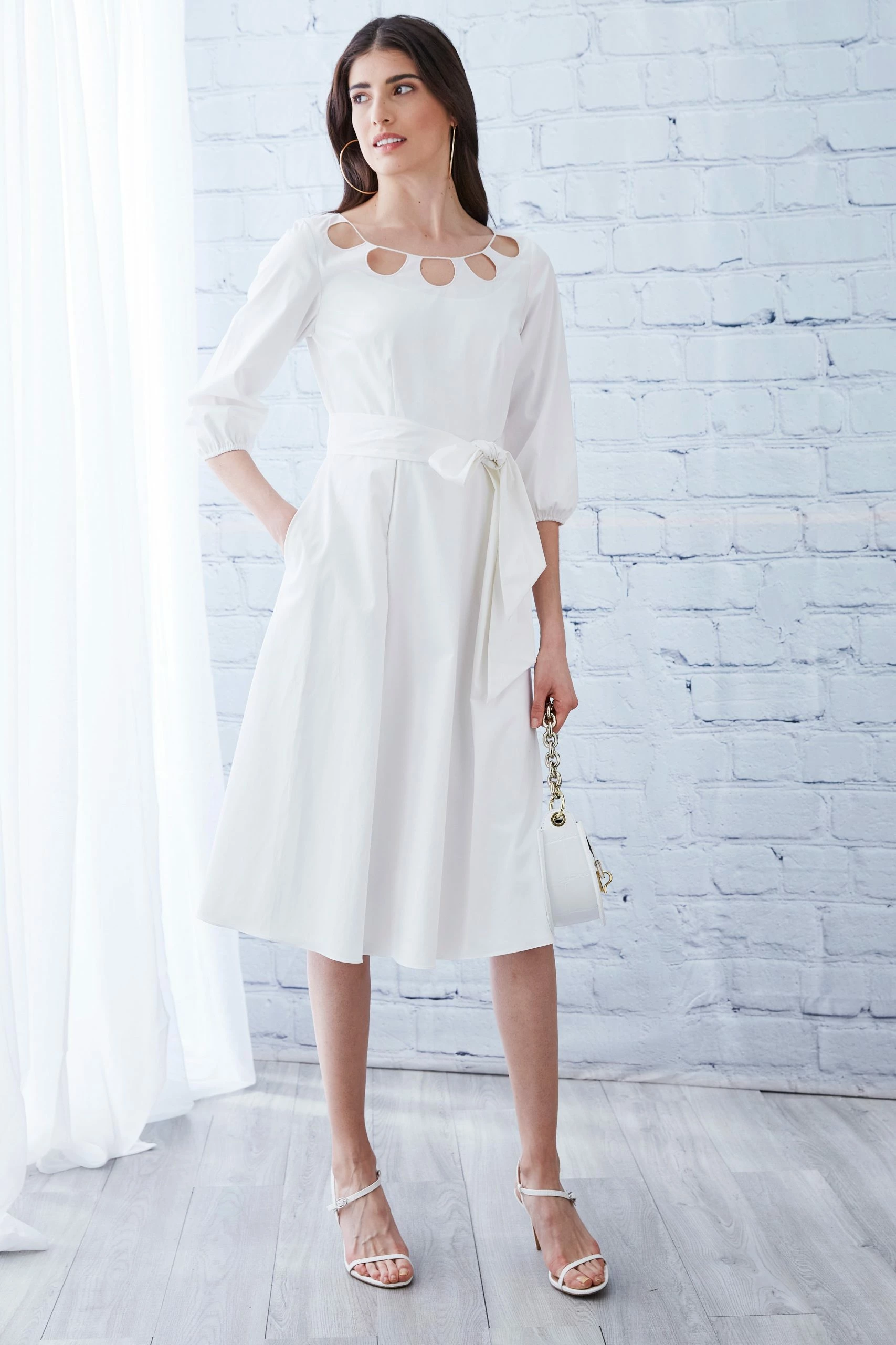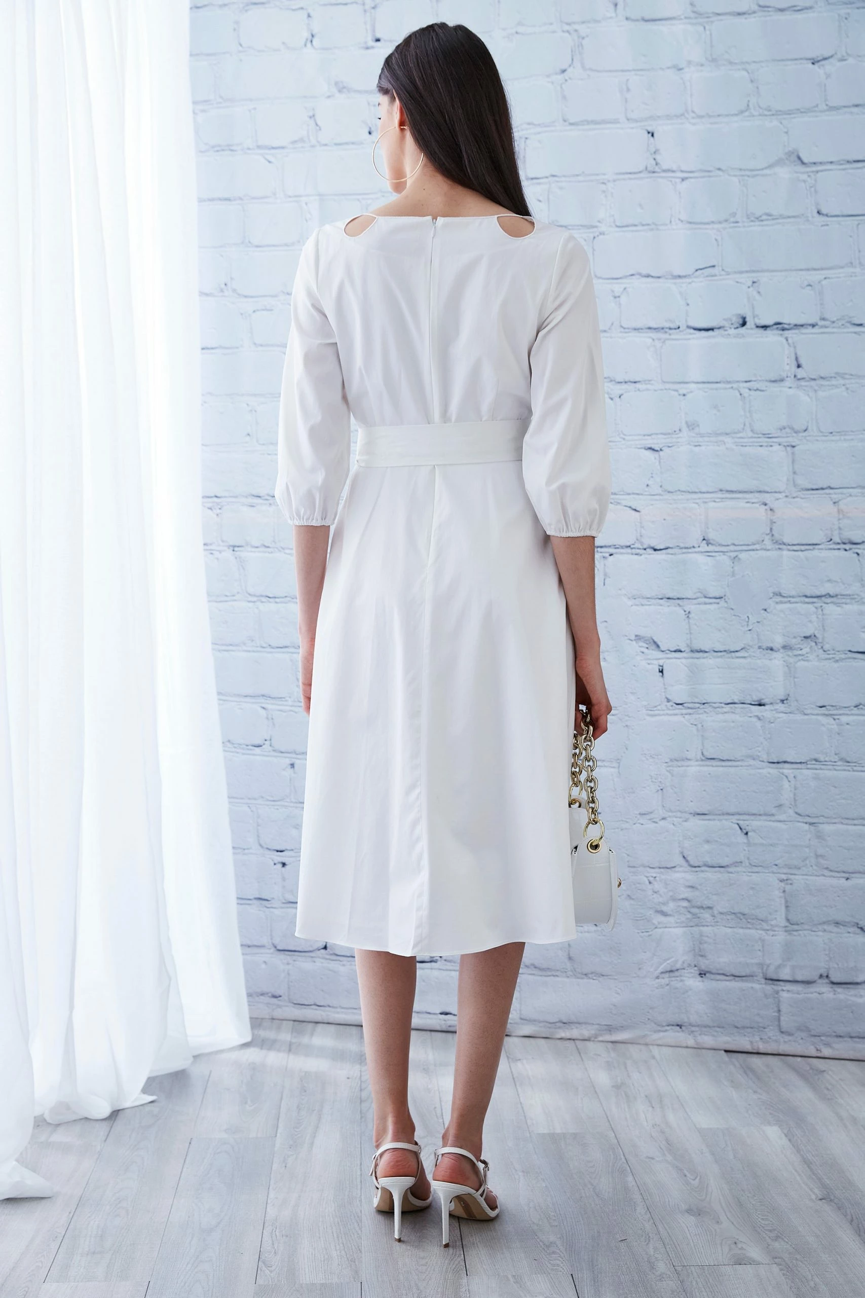 - Cotton Poplin Keyhole Midi Dress with sash & three-quarter sleeves