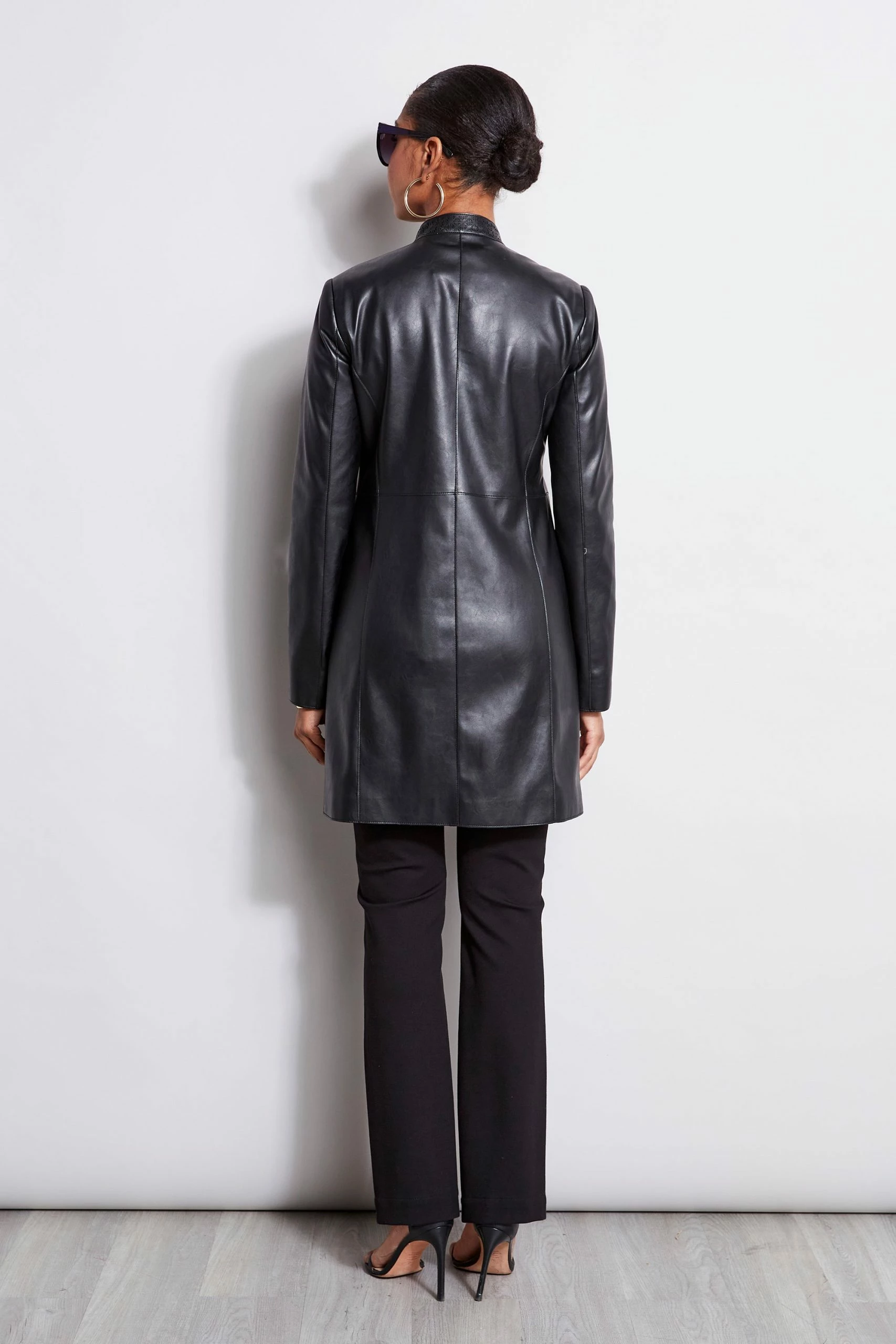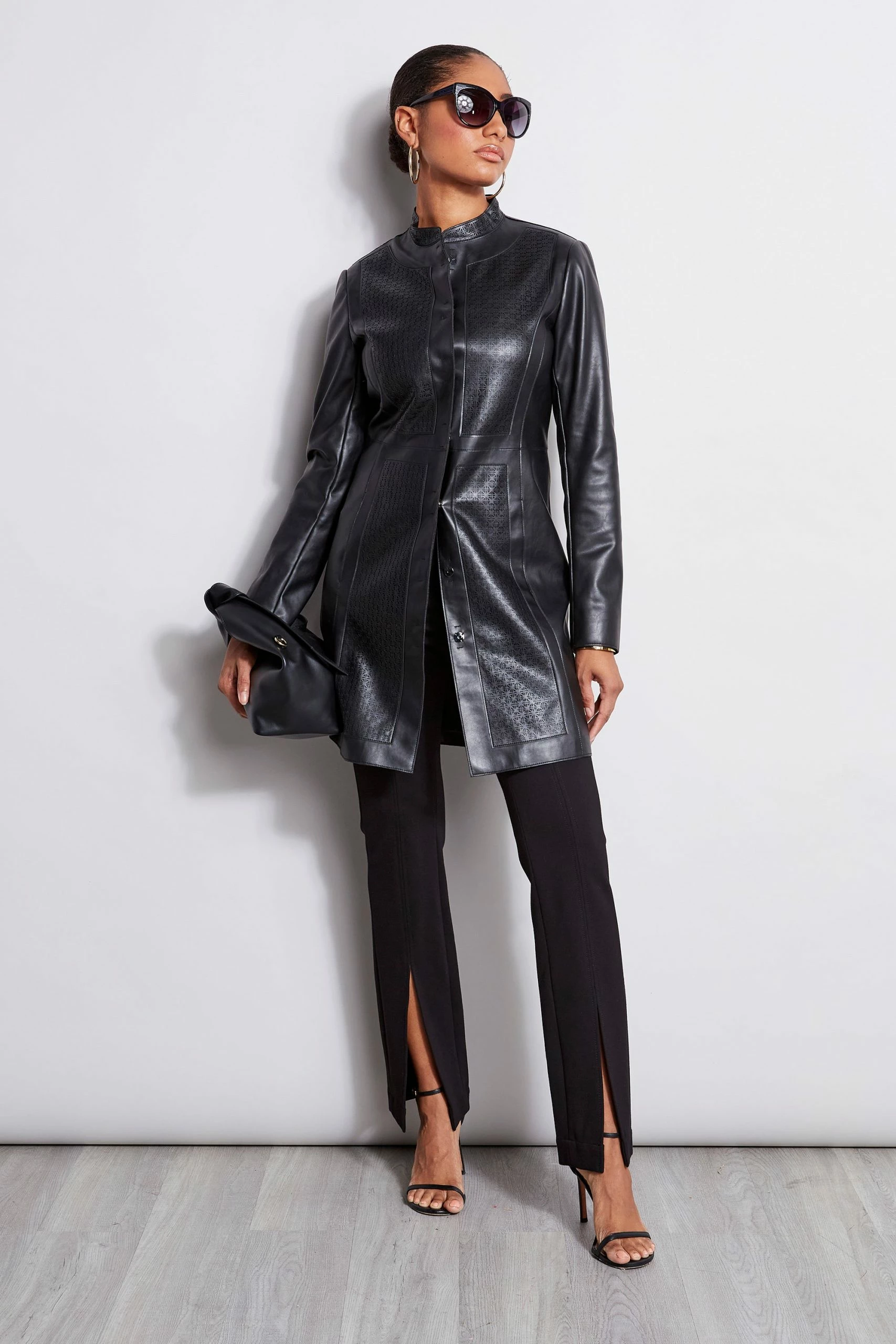 Ultra-Chic & timeless, our Laser Cut Vegan Leather Topper has the designer edge. Done in Luxe Vegan Leather, you will fall in love with its easy cool factor. Sleek in design, it features inseam pockets & metal snaps closure. Perfect for day to dinner, this versatile topper is destined to become a new favorite.