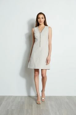 - Sleeveless Linen Dress with Chain Fringe Detail & Side Pockets