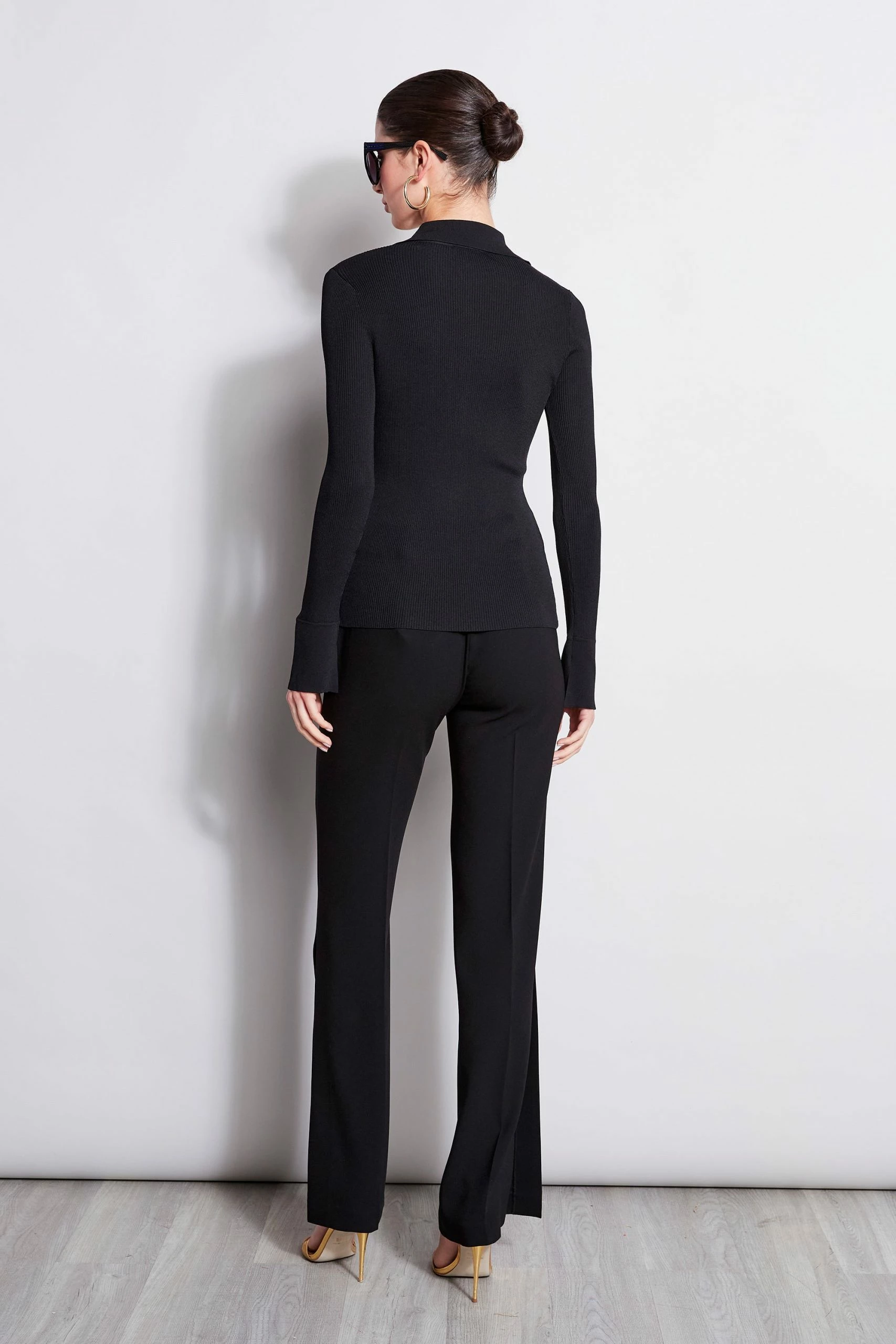 - Longer Sleeve Ribbed Polo Knit with Gold Buttons