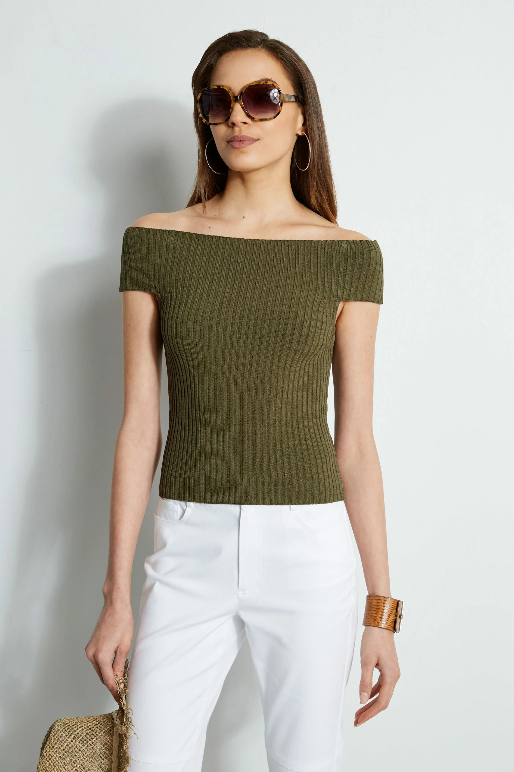 Chic & edgy, our rib knit sweater can be worn two ways, as a modern ballet neckline or off the shoulder. The slim silhouette works from day to a night out.Â