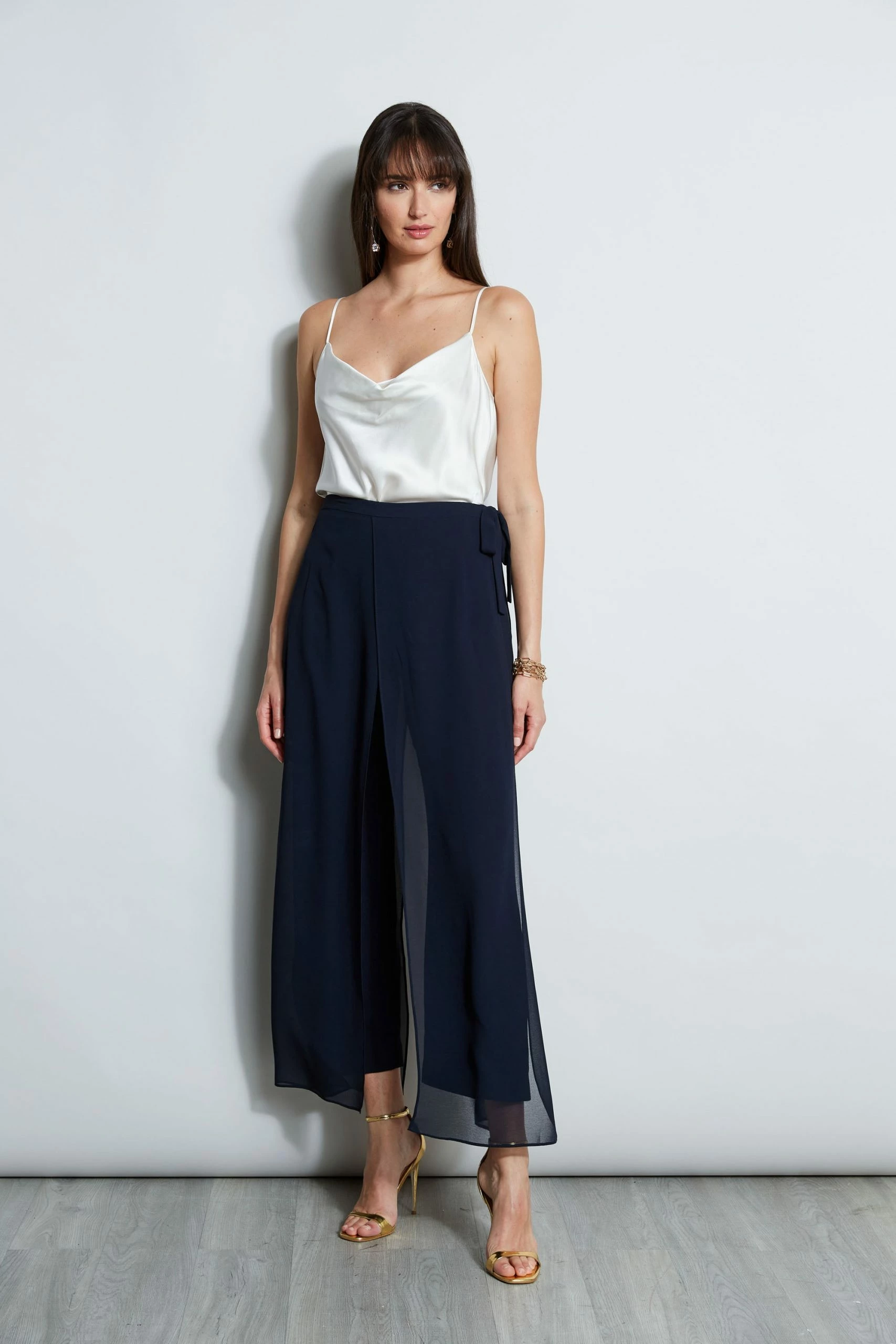 Our free-flowing pant is two looks in one. The Fluid Crepe pant has a removable Georgette apron overlay – perfect for dressing up or down. Consider this a seasonless addition to your closet.