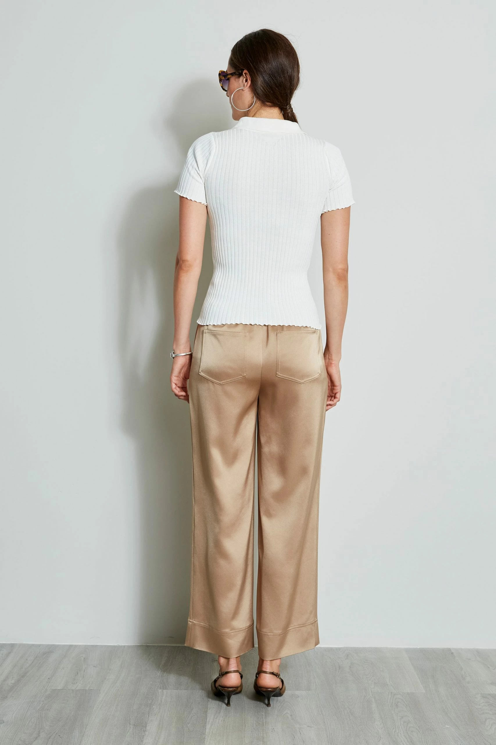 - Short Sleeve Ribbed Polo Knit with Stitch Detail