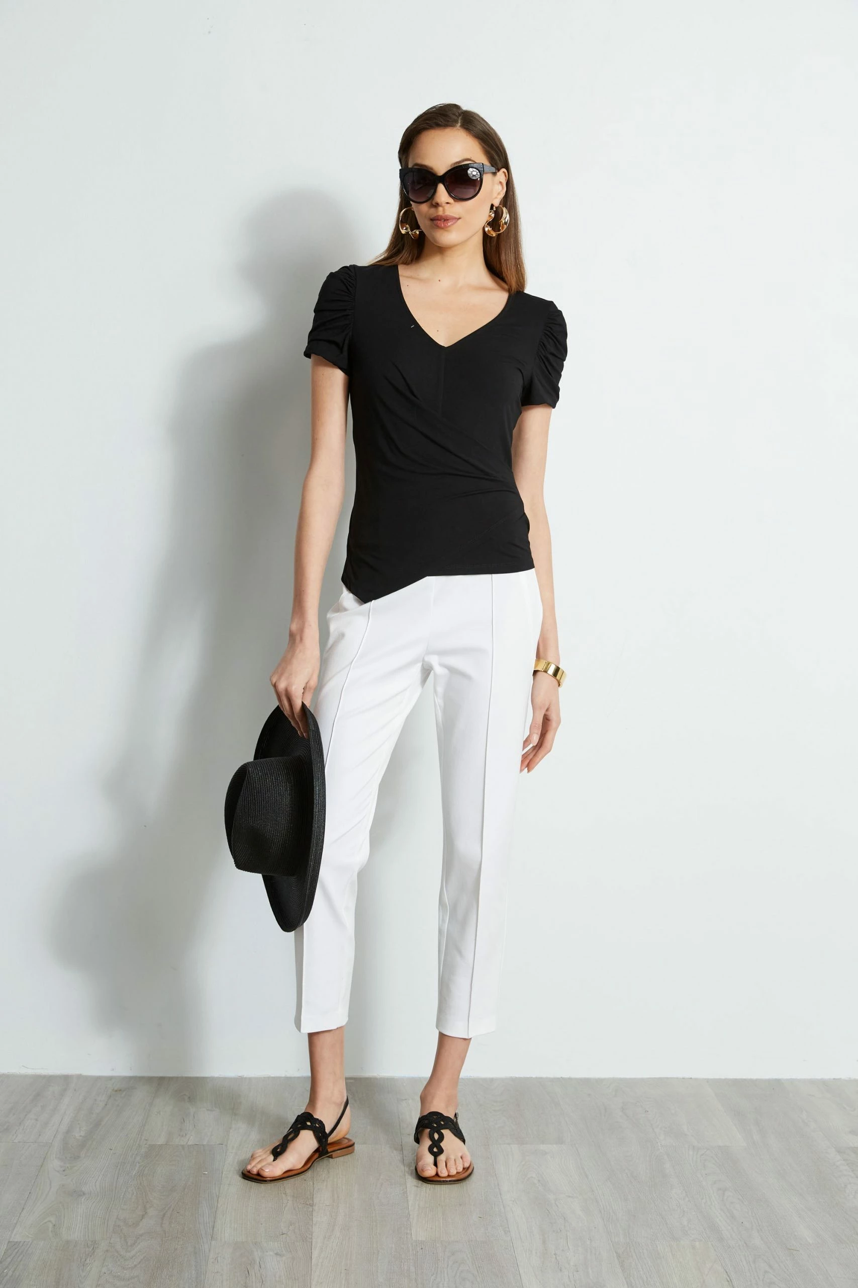 - Short Puff Sleeve Asymmetrical V-Neck Jersey Tee
