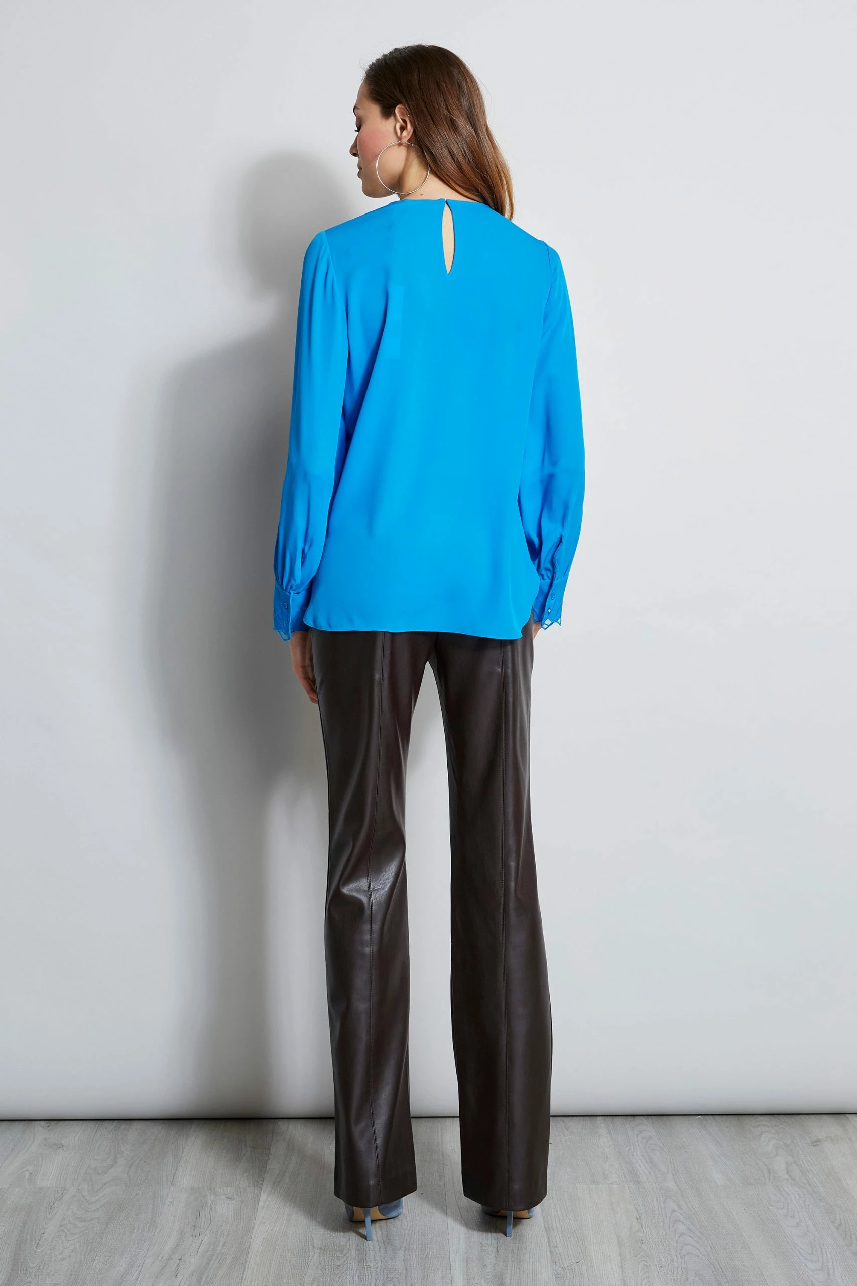 - Long Sleeve Silk Blouse with Geometric Embroidery at the neck & cuffs.