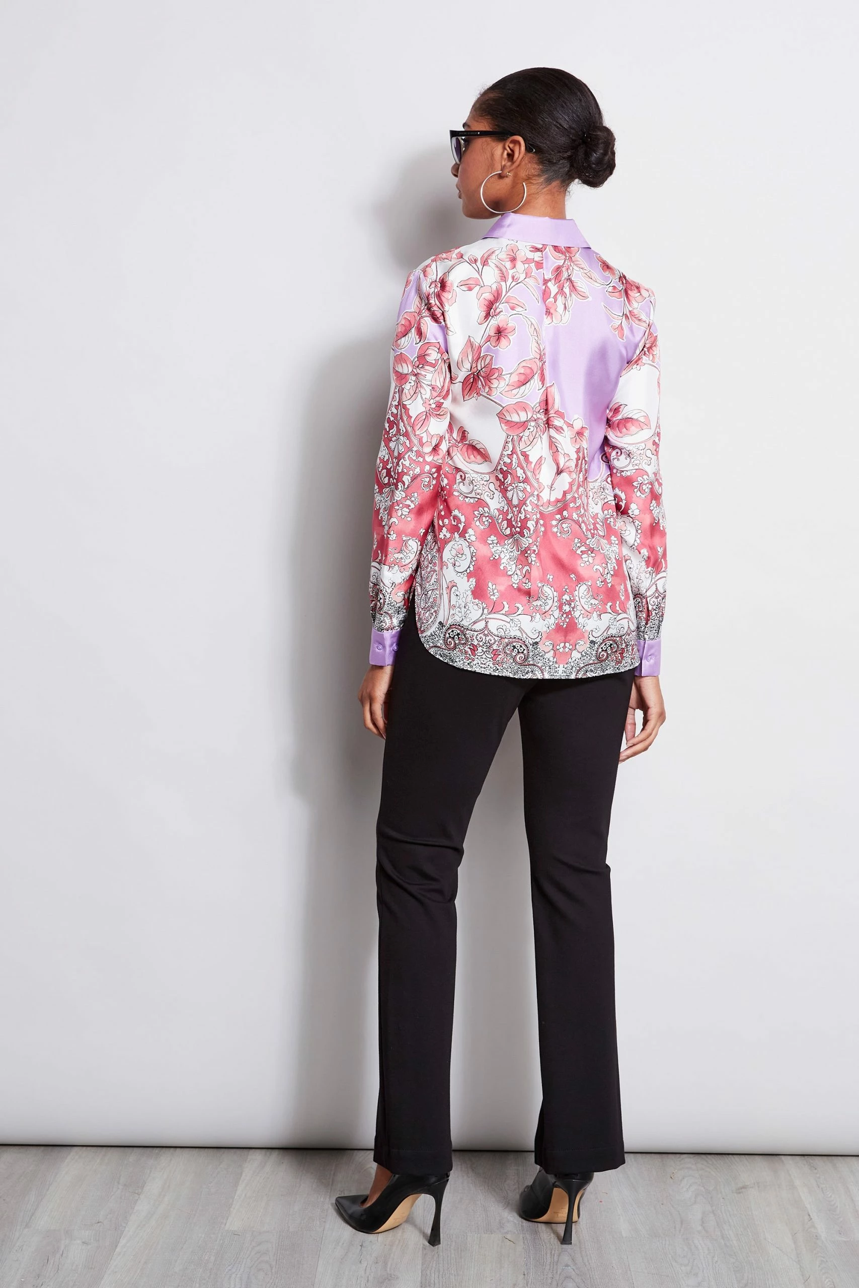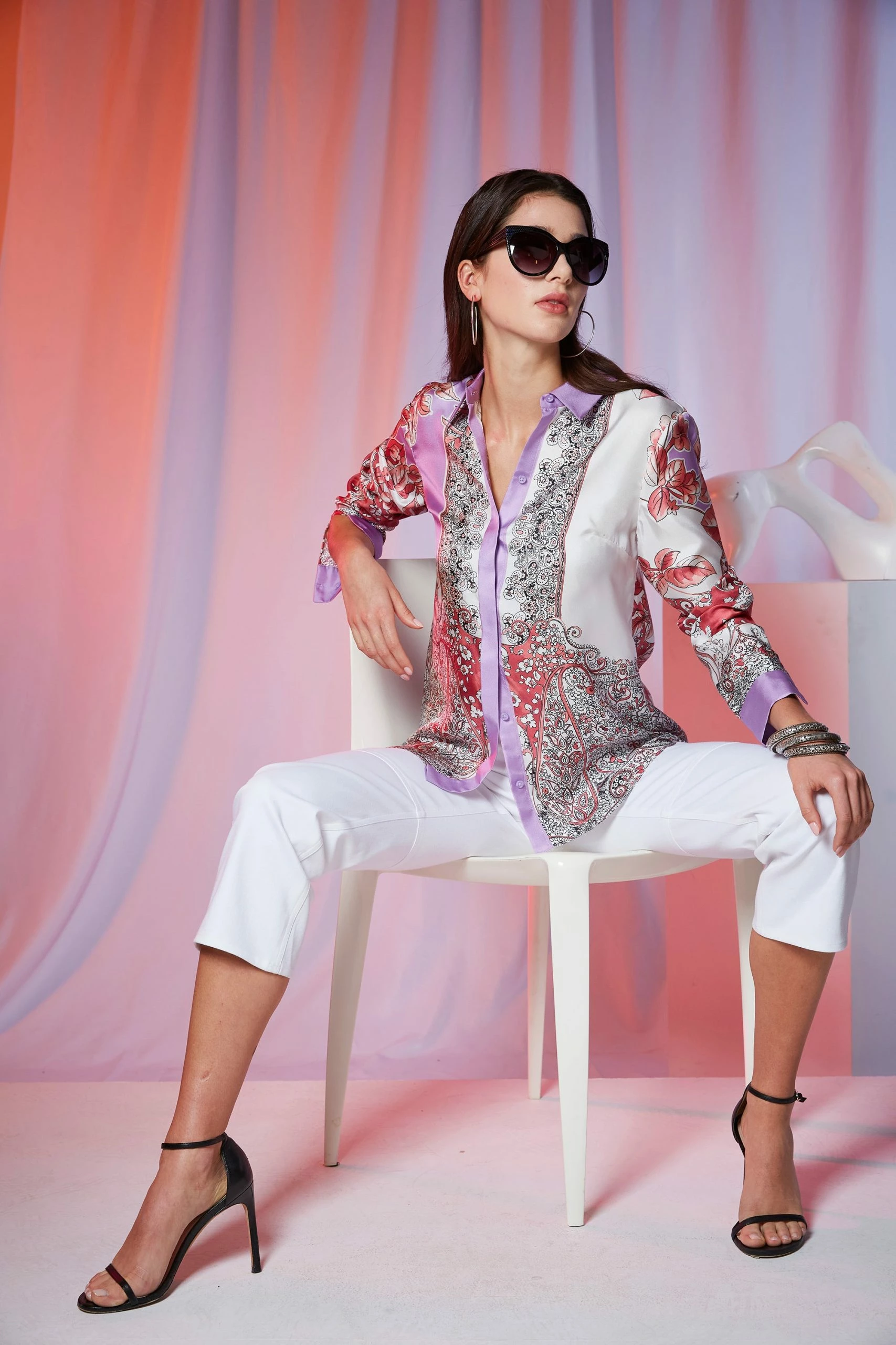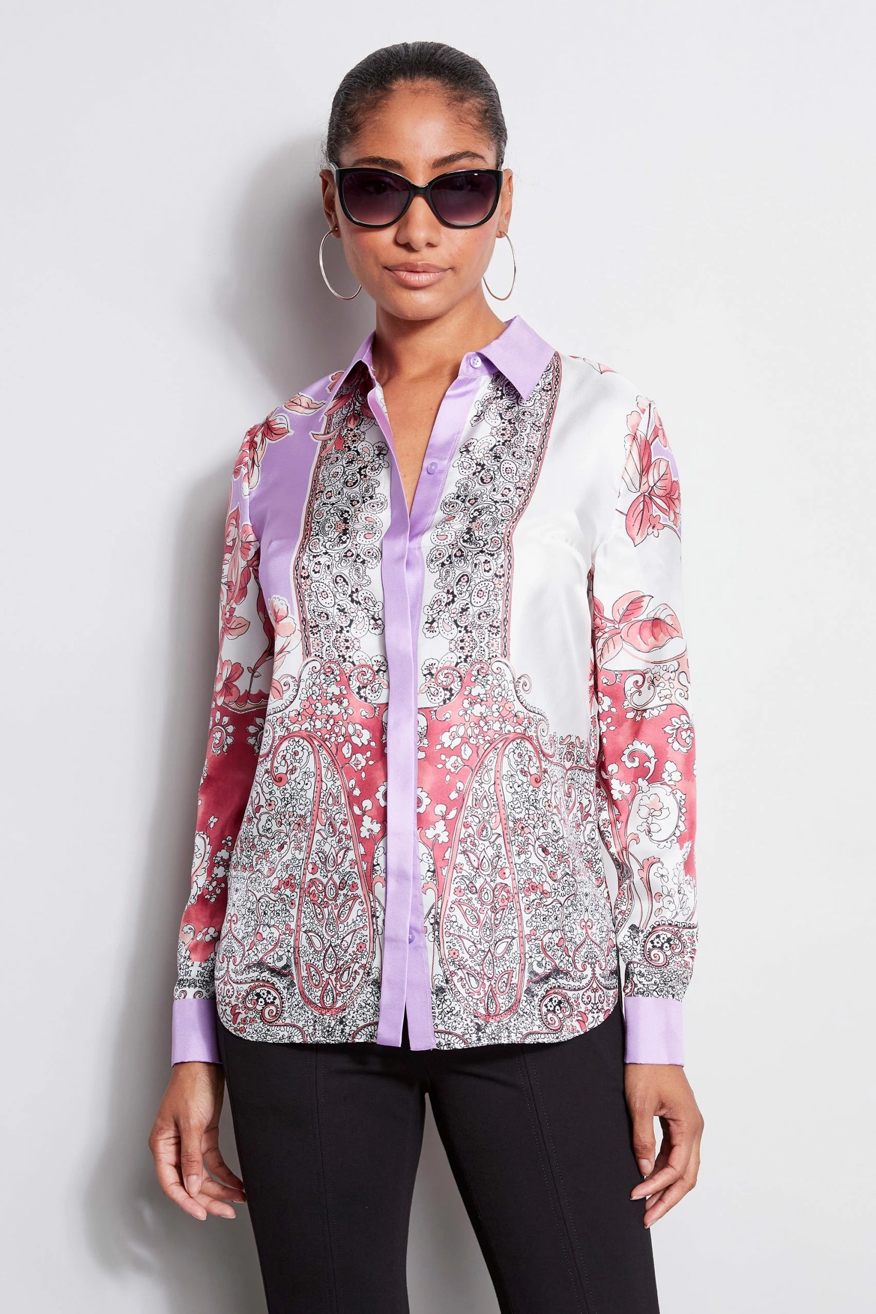 - Long Sleeve Silk Georgette Provence Paisley Button Down Shirt