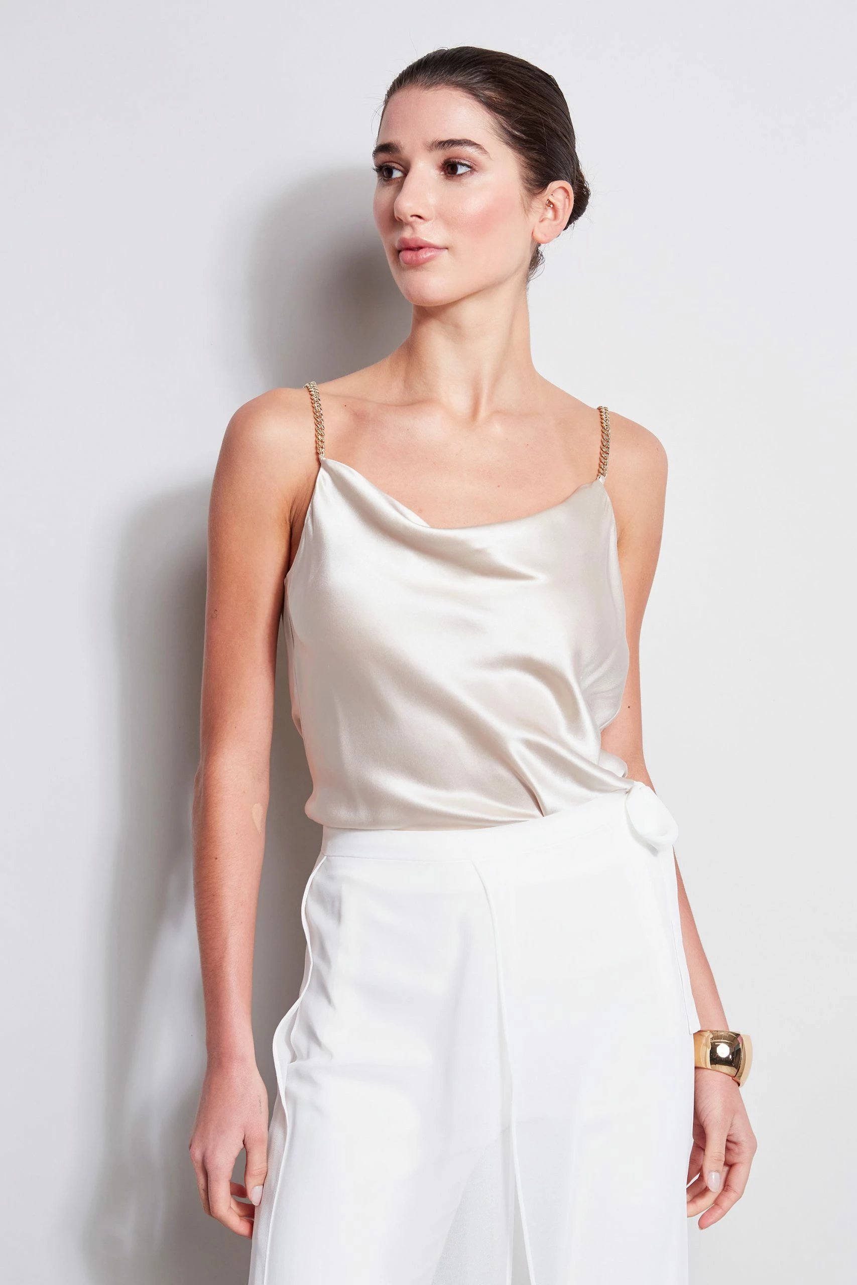 - Silk Satin Cowl Neck Camisole with Chain Straps