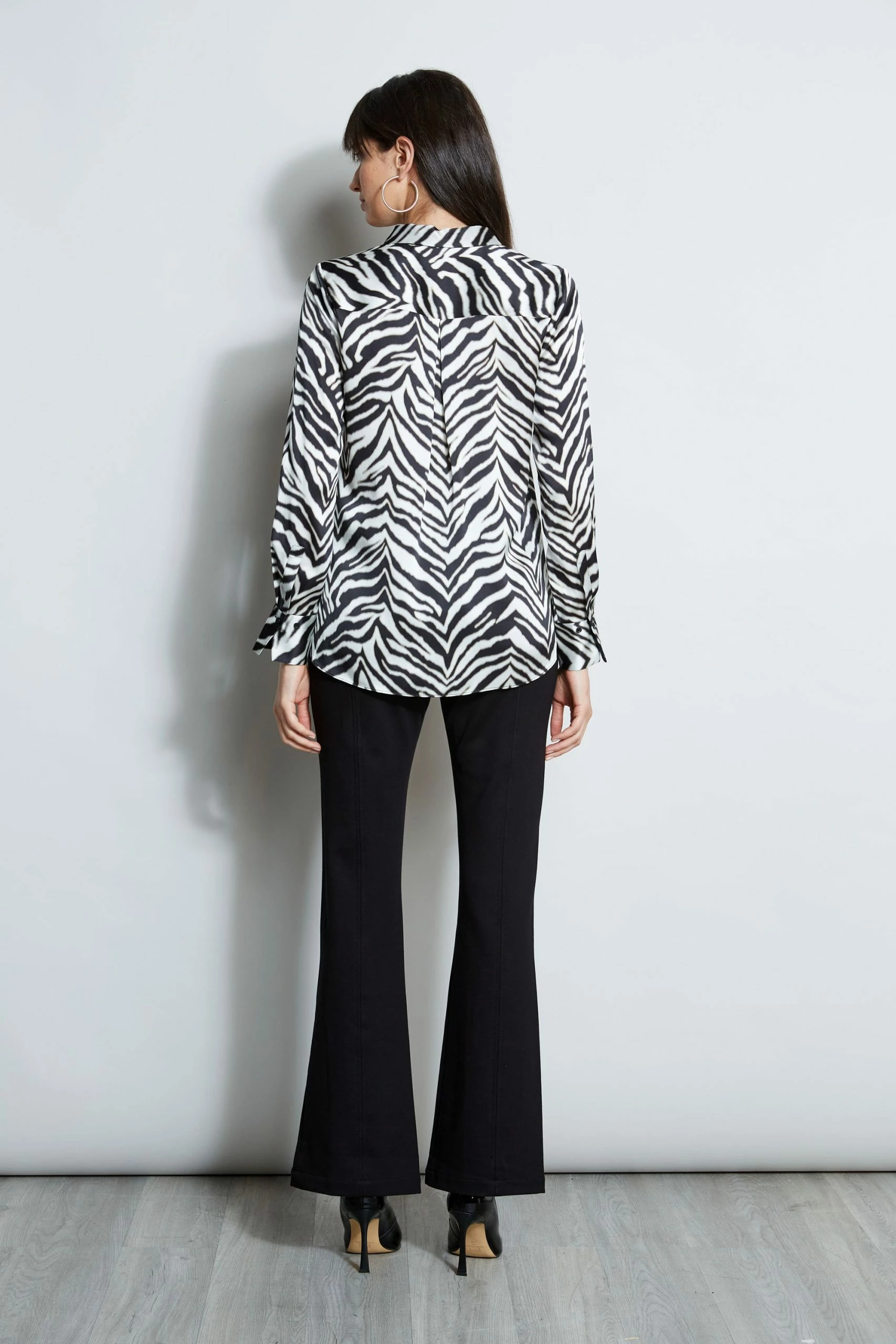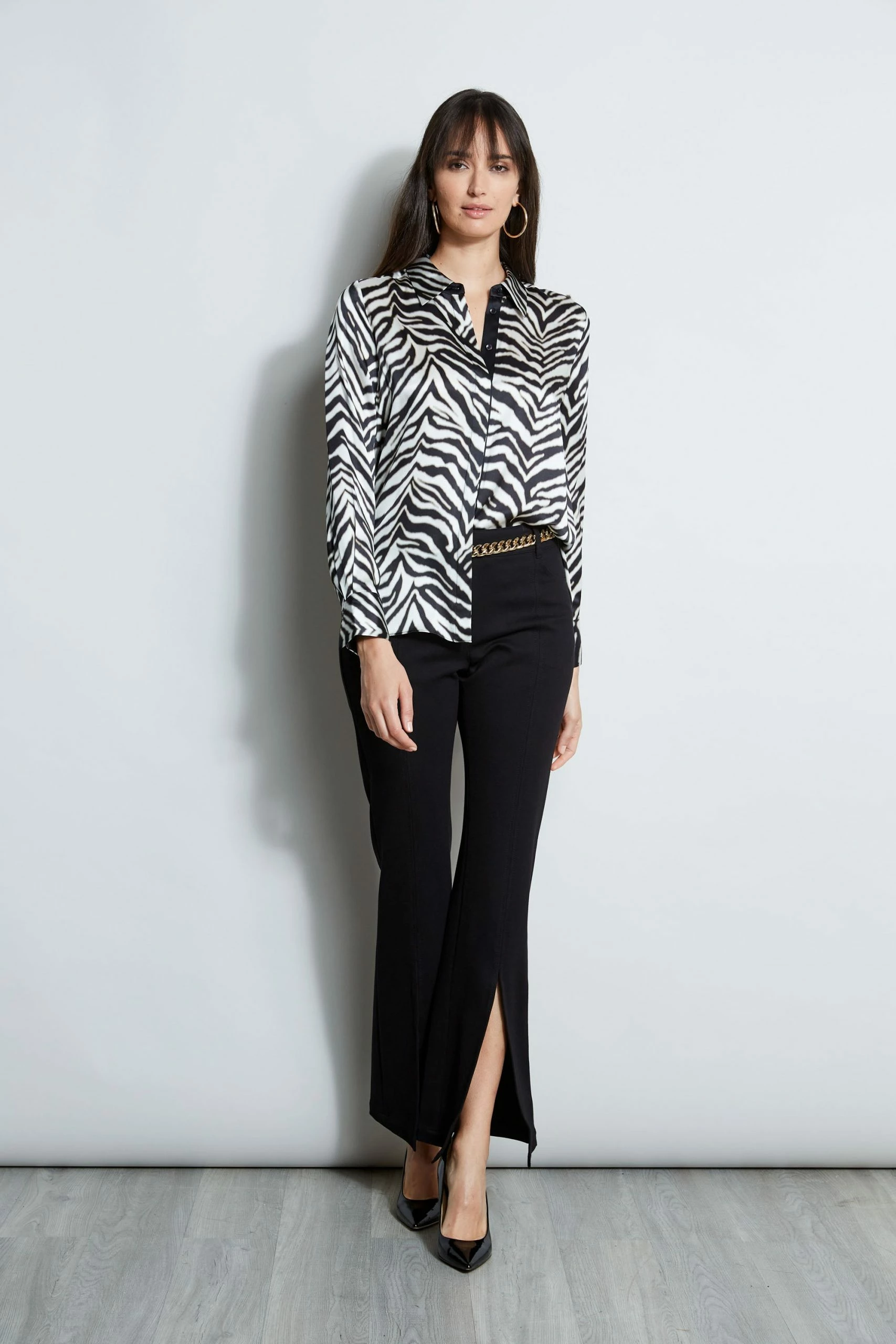 Our animal inspired Zebra print takes a modern turn in Silk Satin. The classic button-down silhouette & hidden placket lend an easy chic attitude. Wear it with jeans or our fluid crepe pants for a polished look.