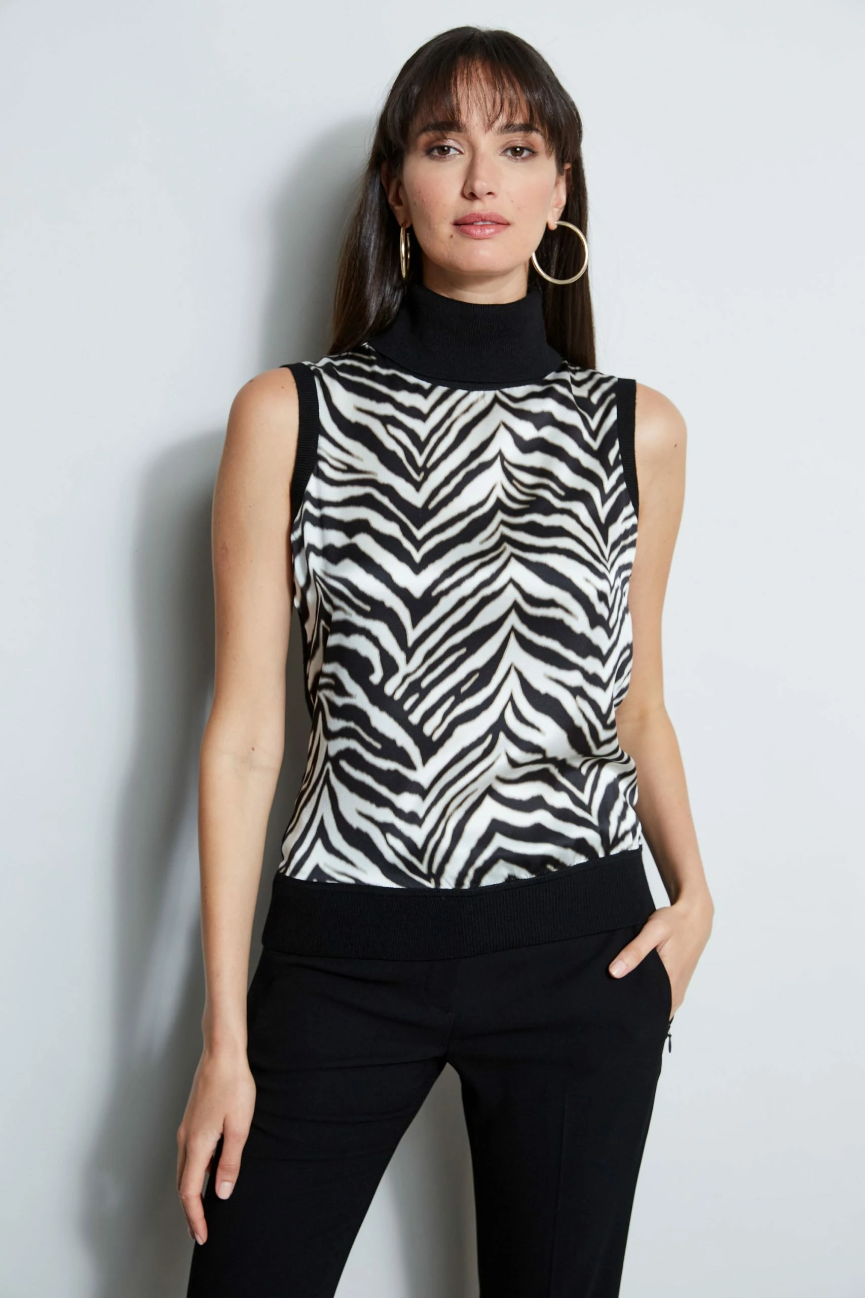 - Sleeveless Silk Satin Zebra Print Sweater with Merino Back