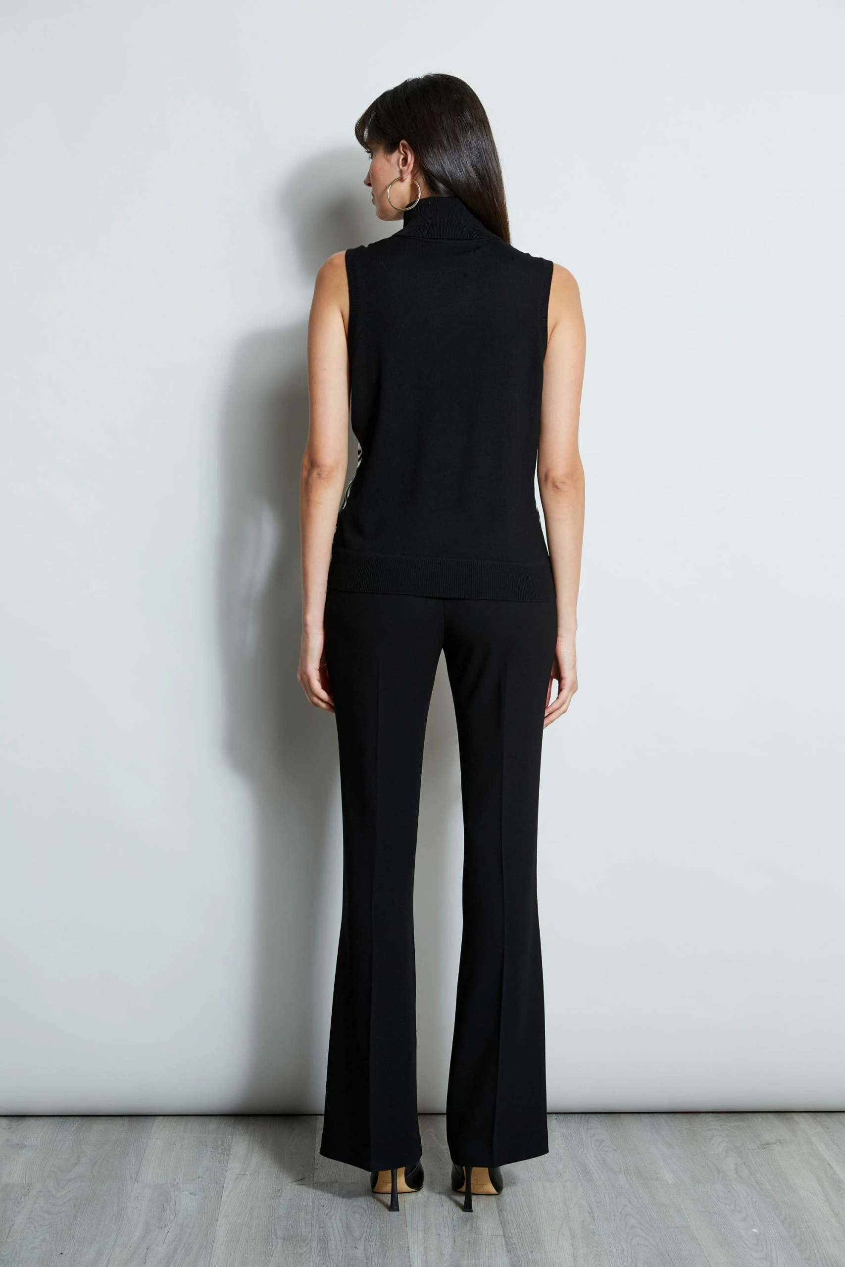 Our Zebra Print Silk Satin Front Turtleneck Sweater defines modern luxe dressing. The shimmer of Satin print adds texture & dimension to our sleeveless merino turtleneck Sweater. This piece will instantly elevate your cold-weather wardrobe, whether layered or worn on its own.