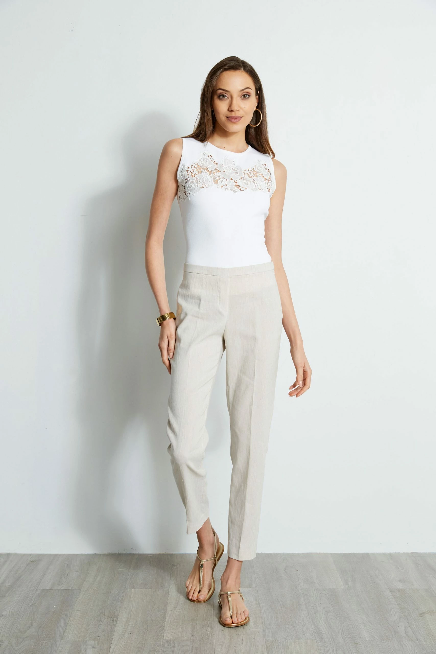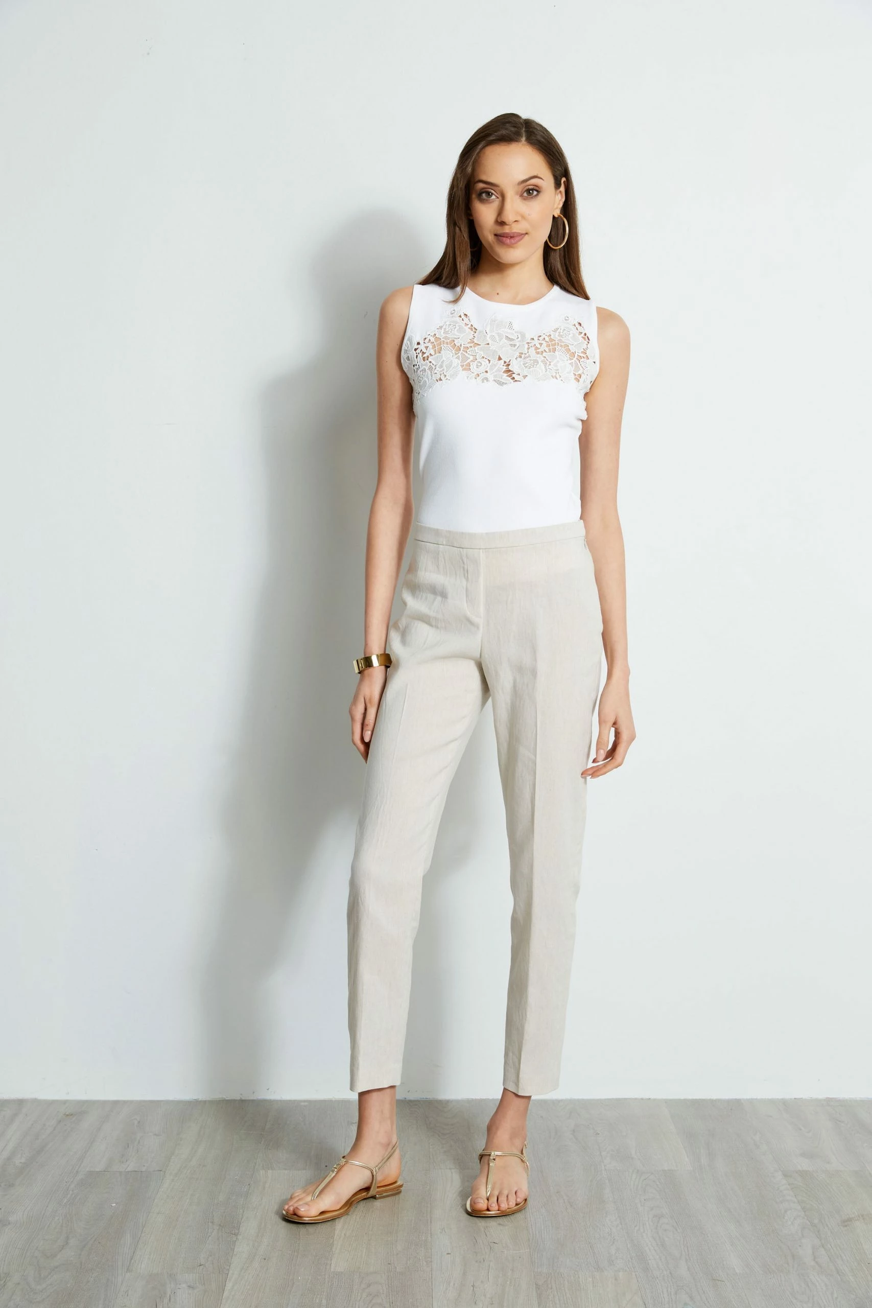 - Linen-Blend Slim Fit Ankle Pant