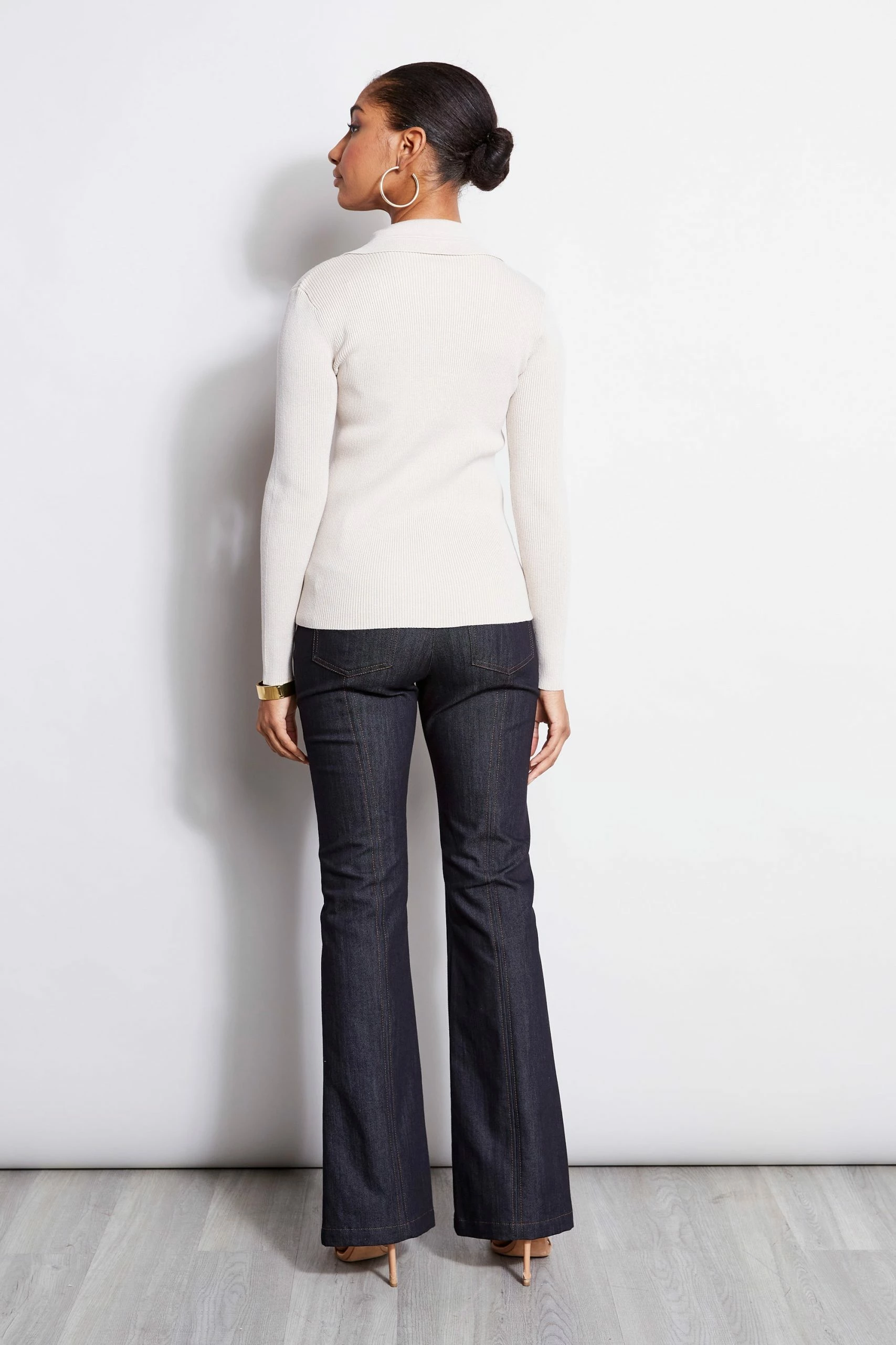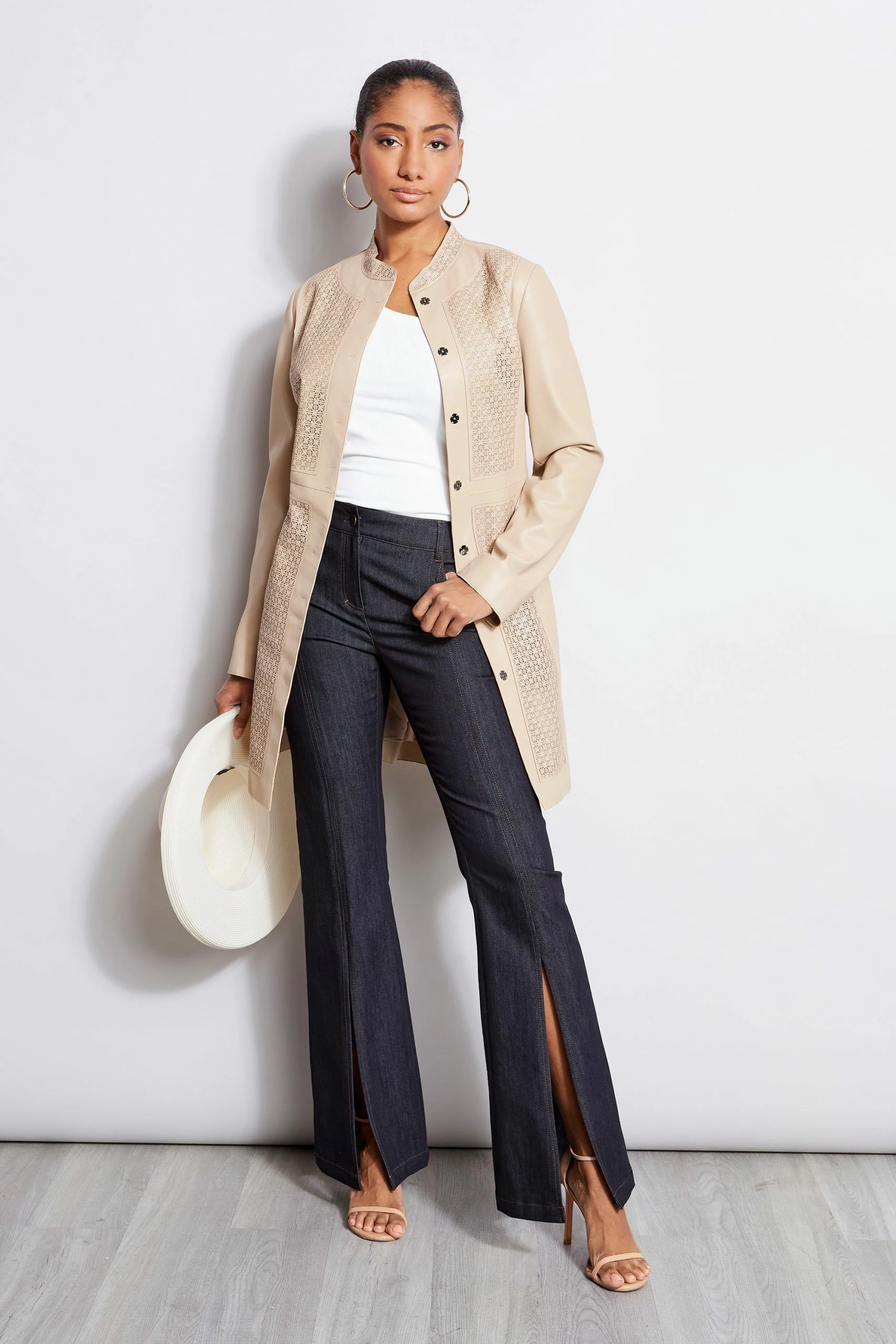 We chose our favorite Denim for our modern fit and flare pants. Incredibly flattering with a Slit Front & contrasting Caramel stitching- get ready for the compliments!