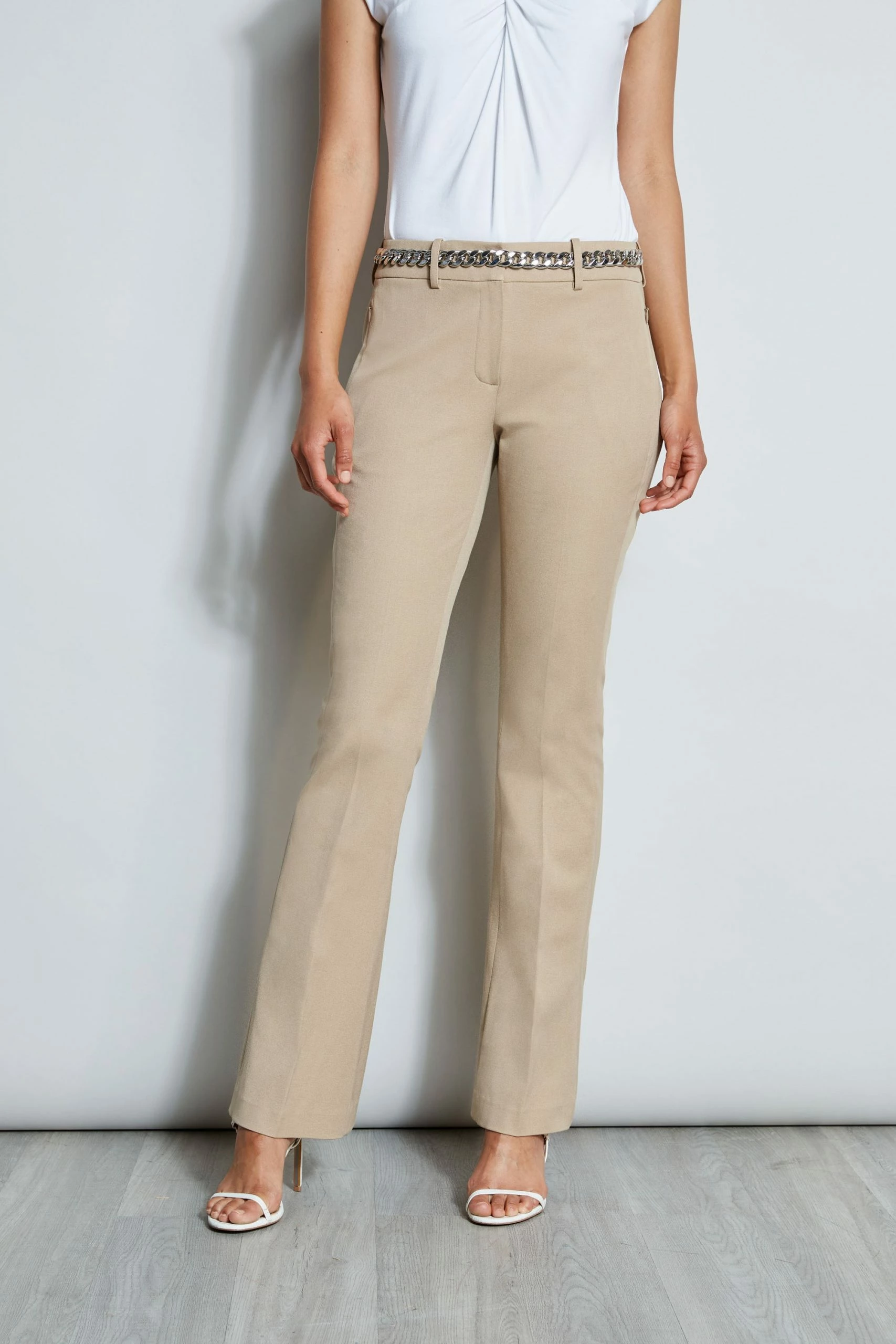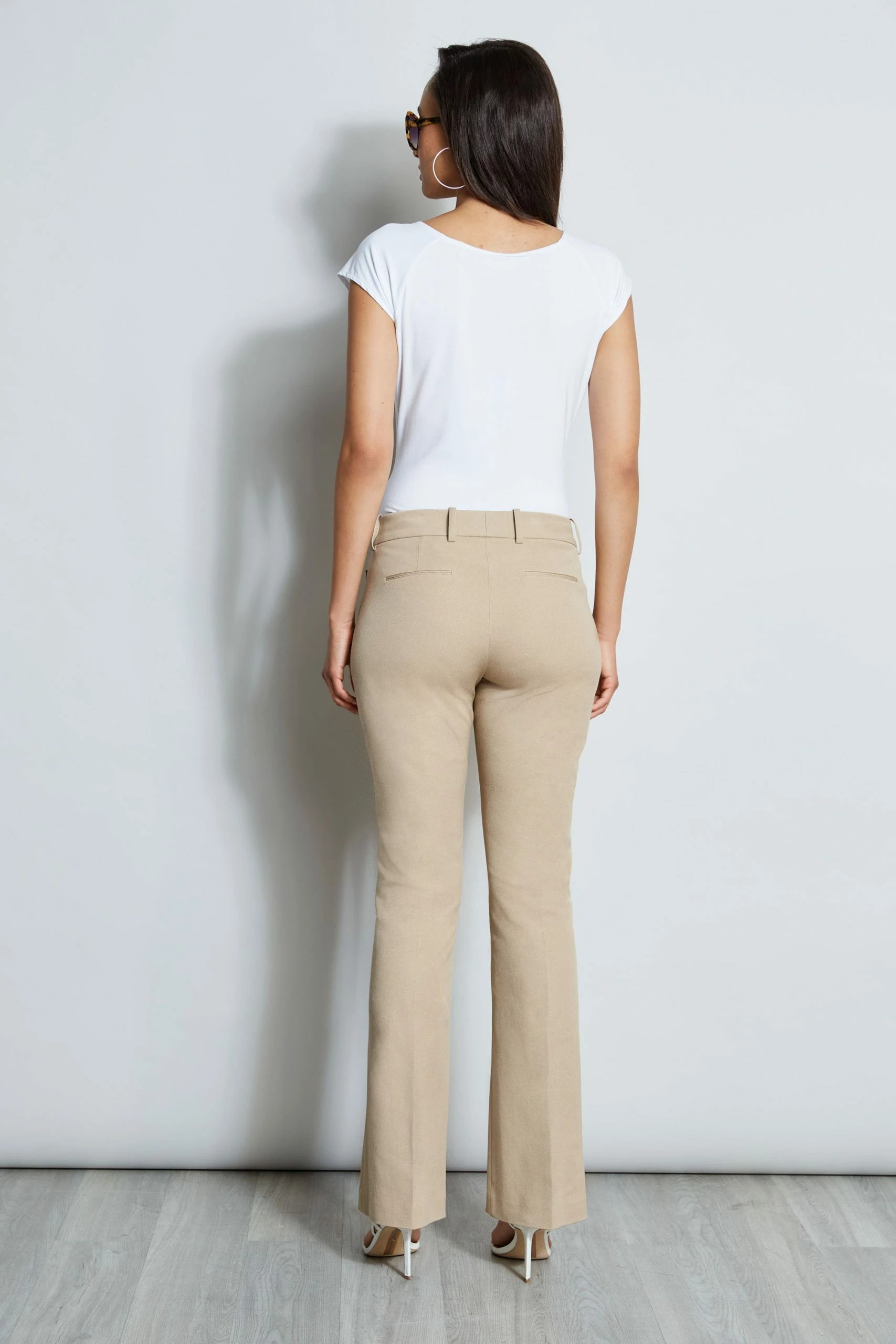 - Stretch Twill Fit & Flare tailored dress pant done with front zip closure