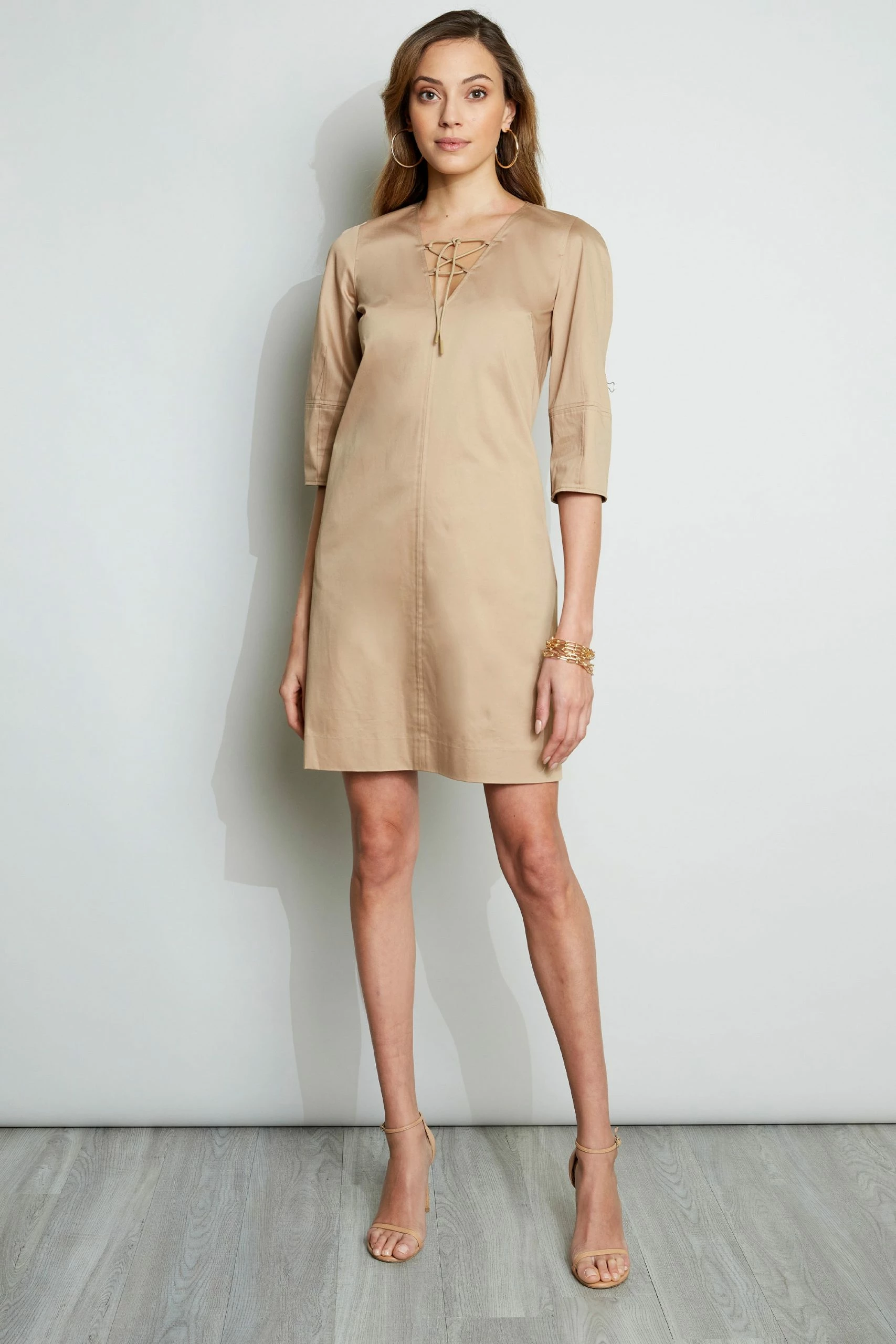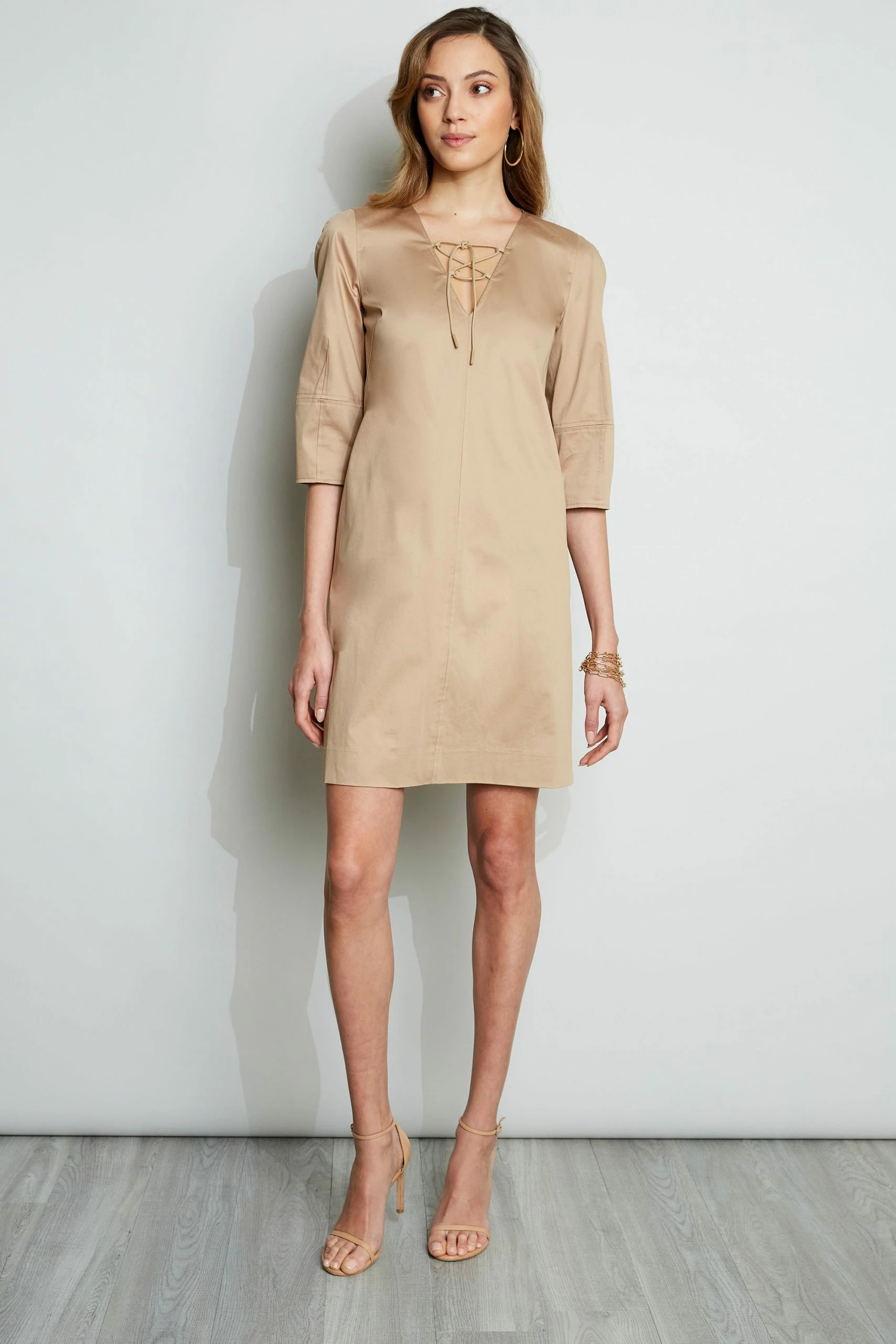 Our chic city Safari Dress has the effortless look that is perfect for work or casual summer days. Our favorite stretch Cotton Poplin sheath with its lacing neckline and sporty attitude is the definition of “one and done”.