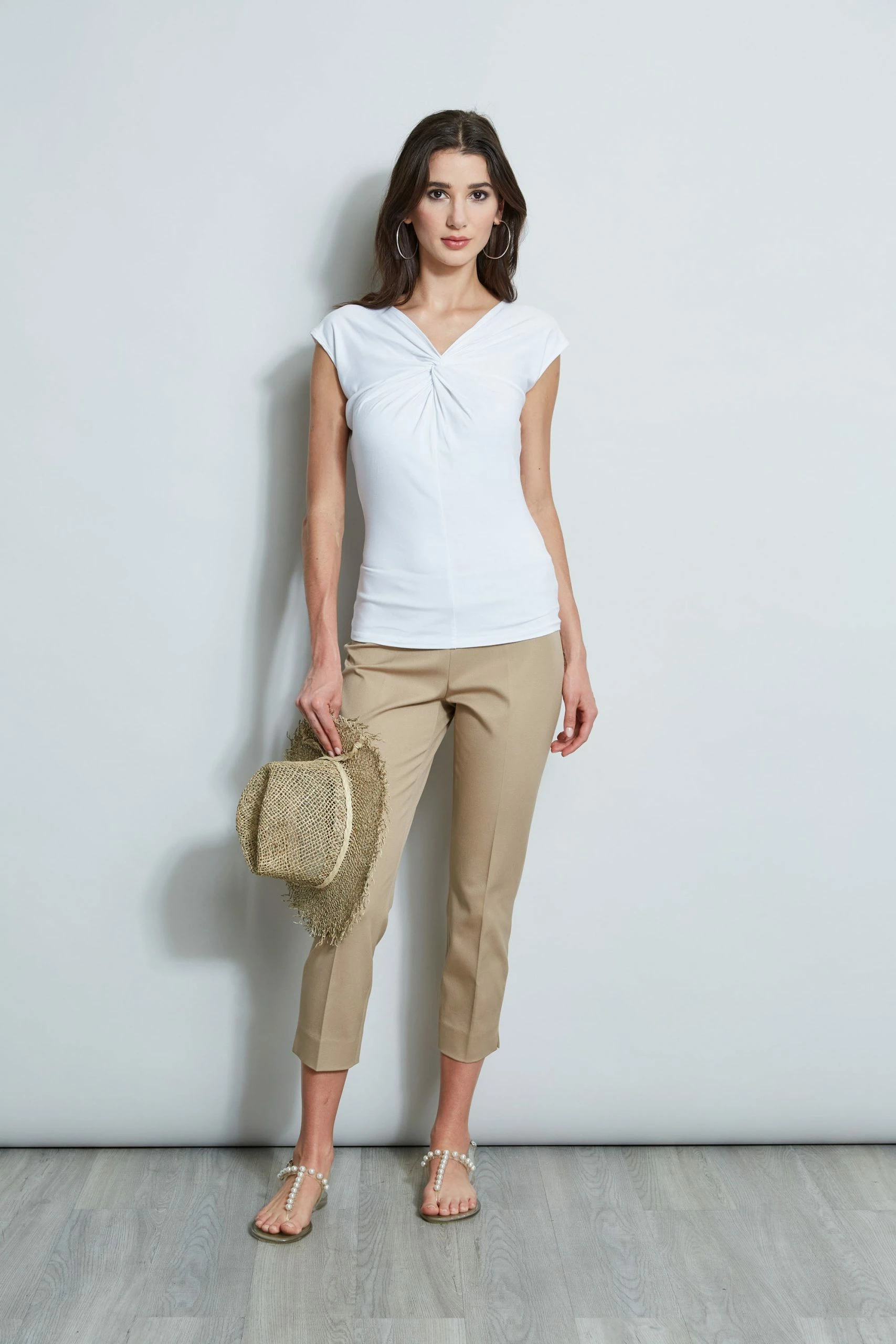 - Cap Sleeve Jersey Tee Shirt with V-neck Twist Front