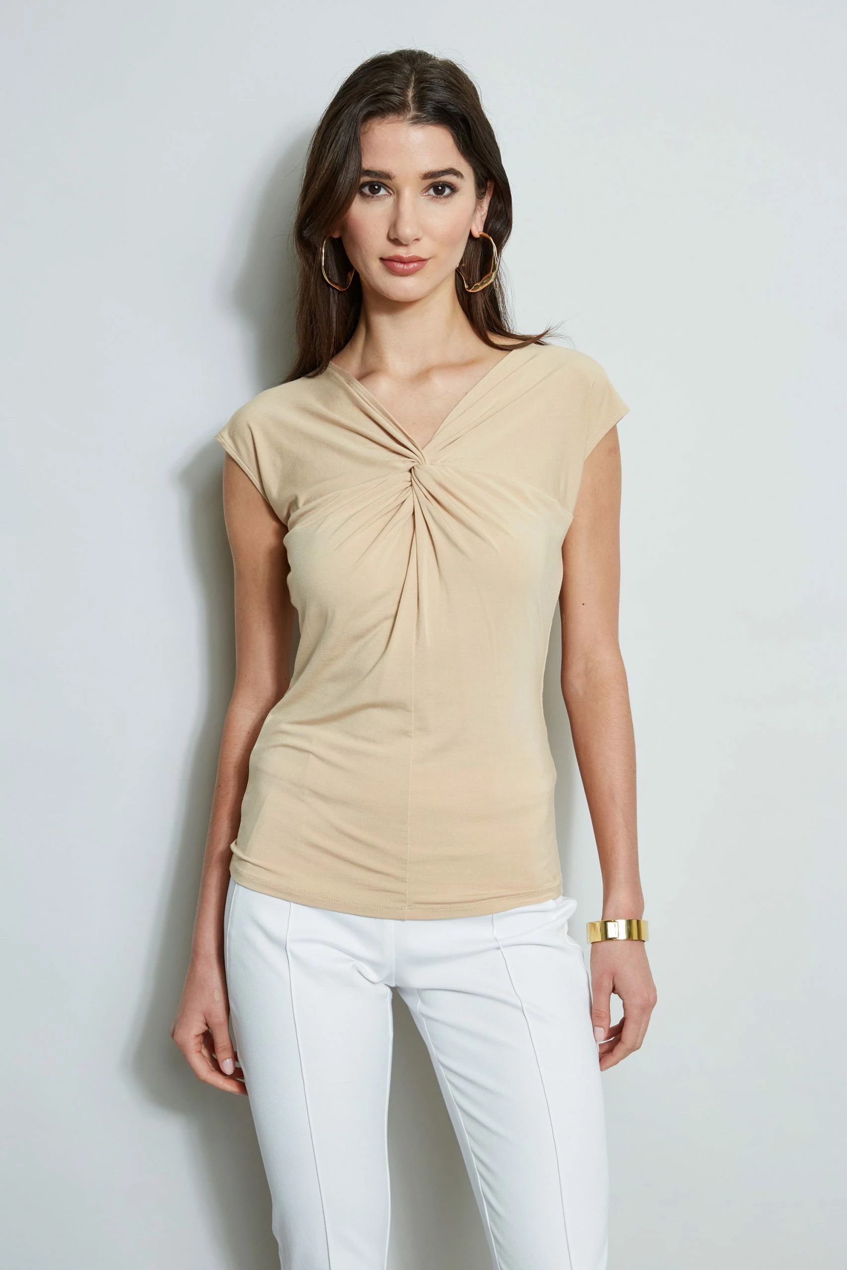- Cap Sleeve Jersey Tee Shirt with V-neck Twist Front