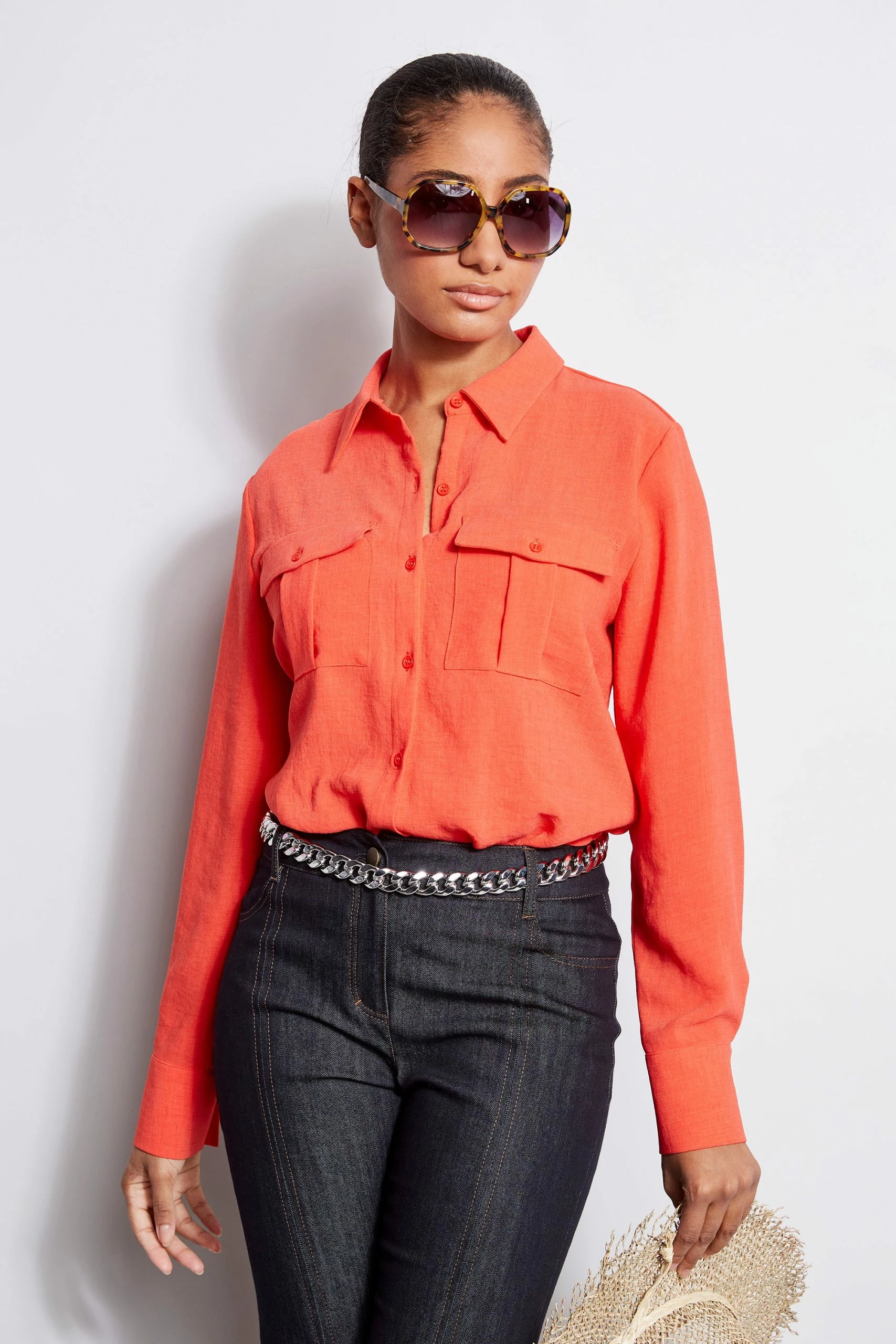 Express yourself in our washed Georgette Utility Shirt. A mix of design and function, wear it as a shirt or as a modern layering piece over a tank – it’s that versatile. Â