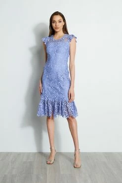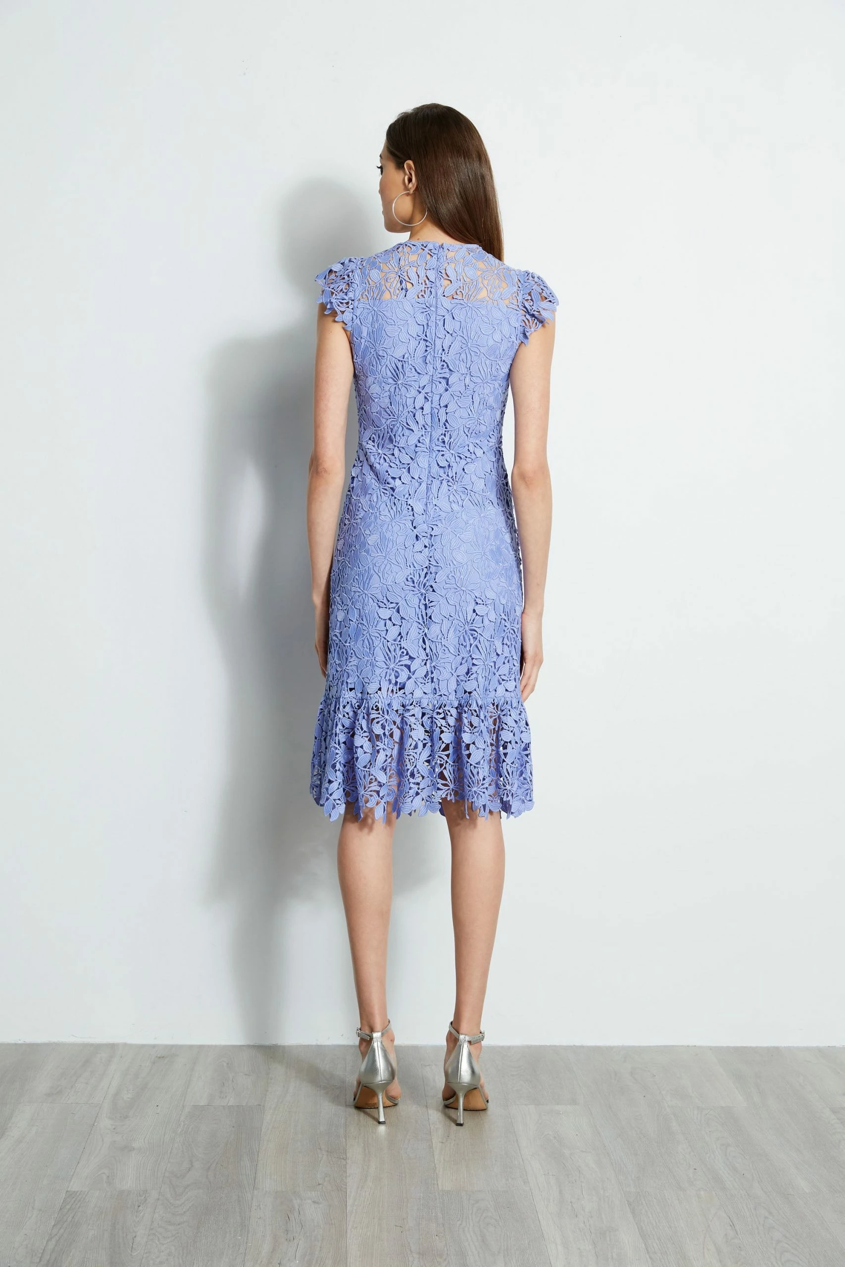 We chose a chic corded Lace in a delicate floral leaf design for our Cocktail Dress. The Satin lining and flounced hem add dimension to this sophisticated Lace Midi Dress.
