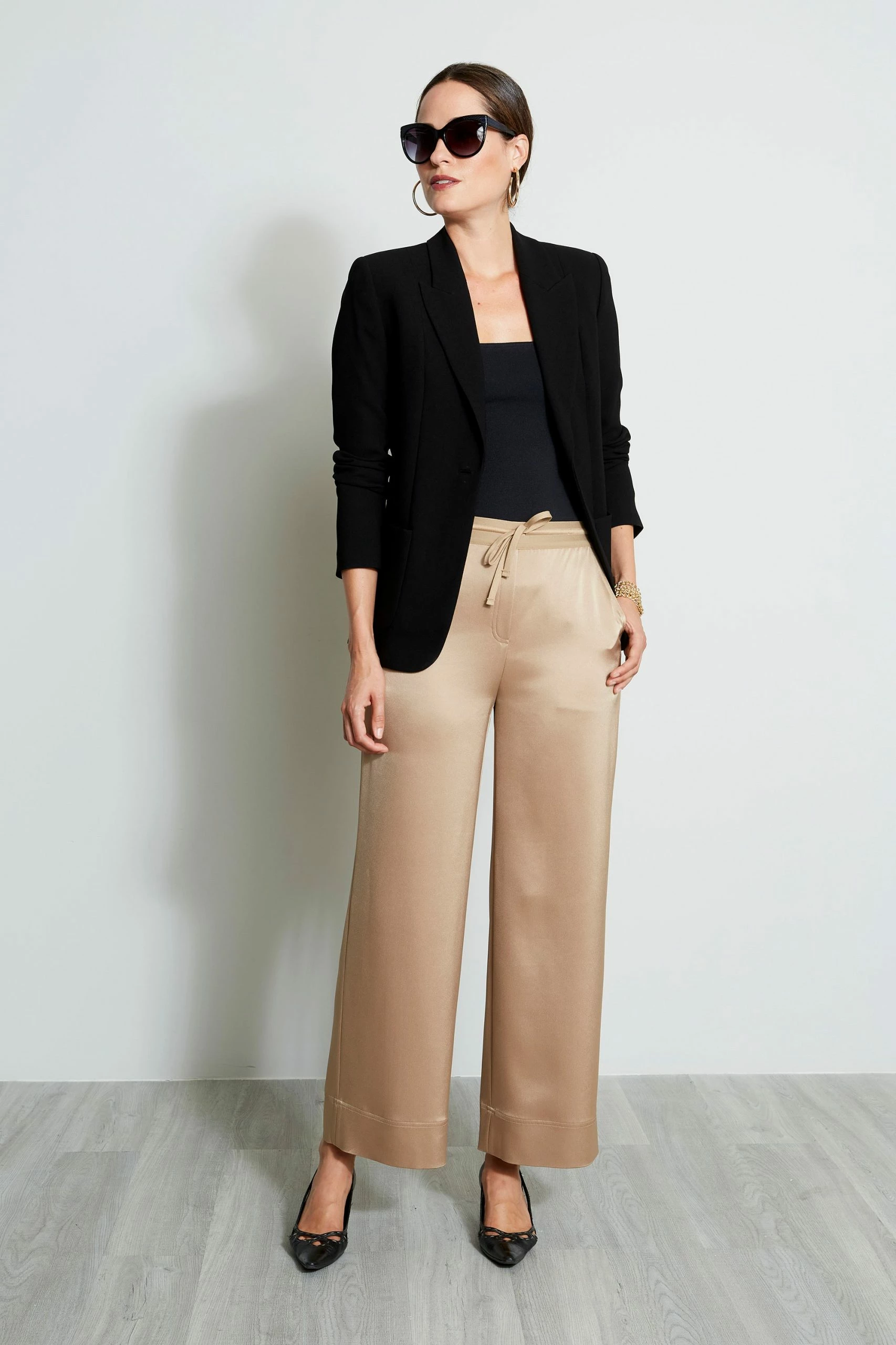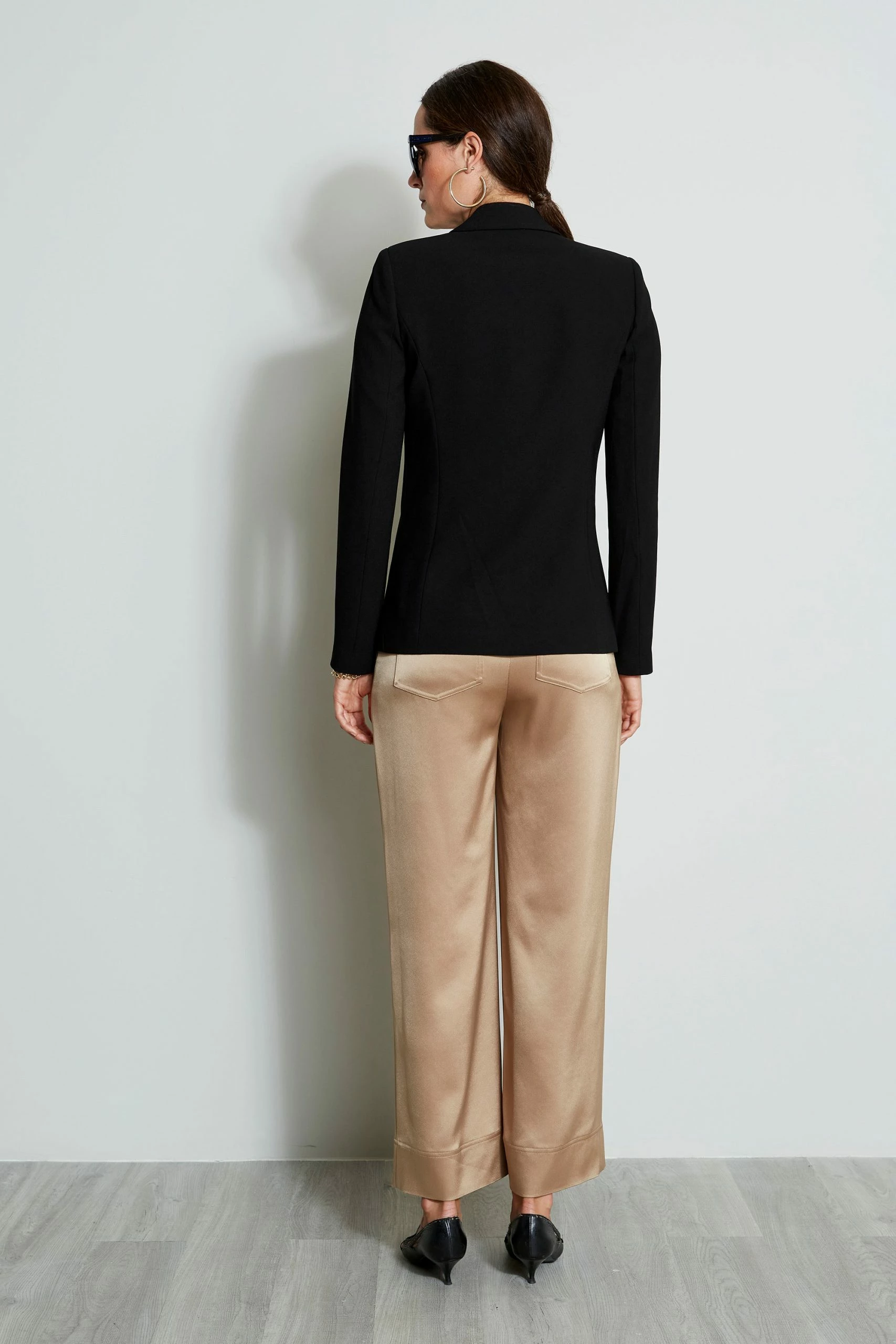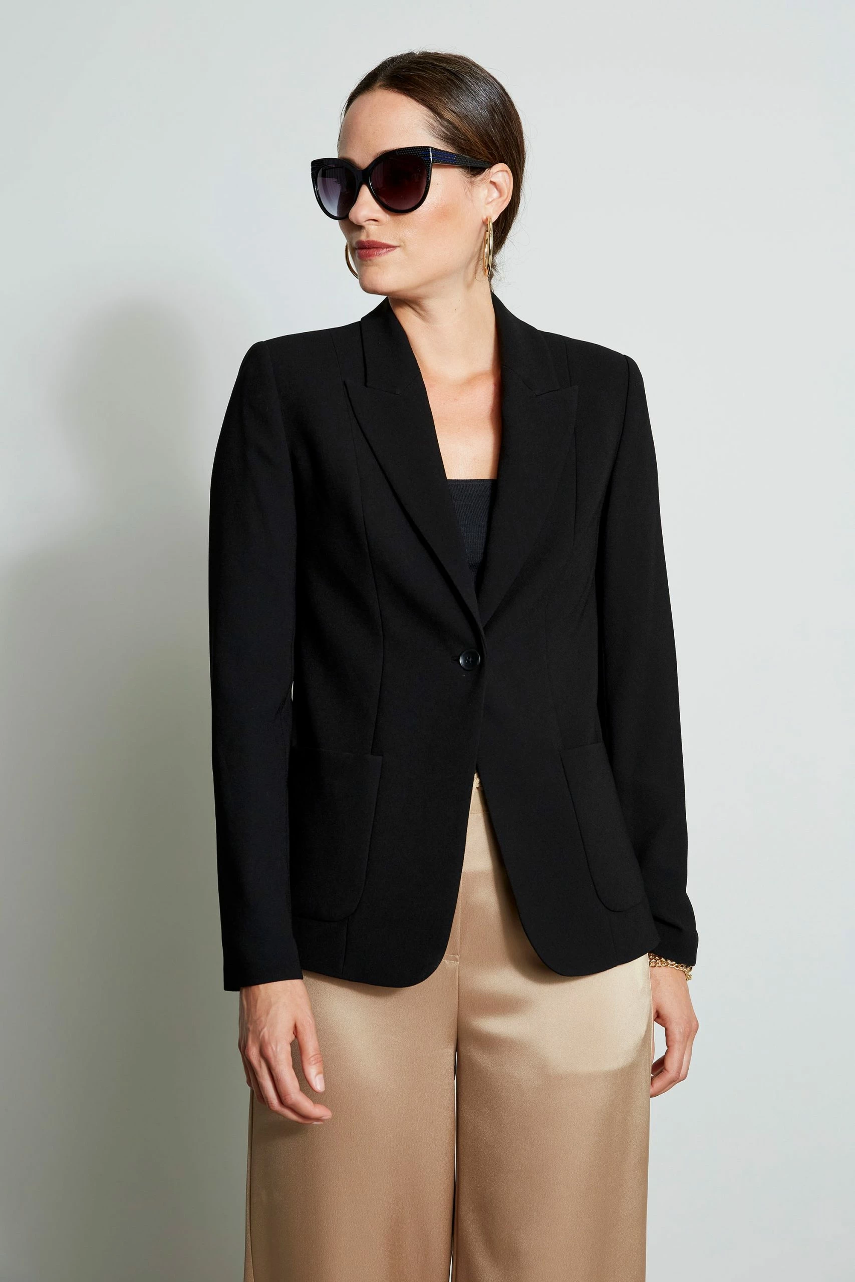 Crafted in Fluid Crepe, our Wendy Jacket is a classic structured blazer with a notched lapel, two patch pockets, and single button closure.