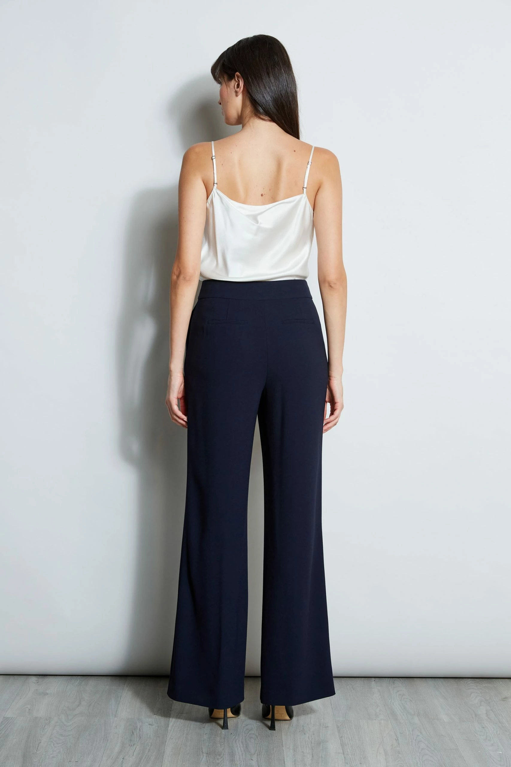 Fall in love with the season’s must have Wide Leg Pant in Elie’s iconic Fluid Crepe. It features a high rise waist, fly front closure and fluid pin tuck detail leg. Wear it with its matching asymmetrical side panel blazer or wear it nonstop as this seasons must have addition to your wardrobe.