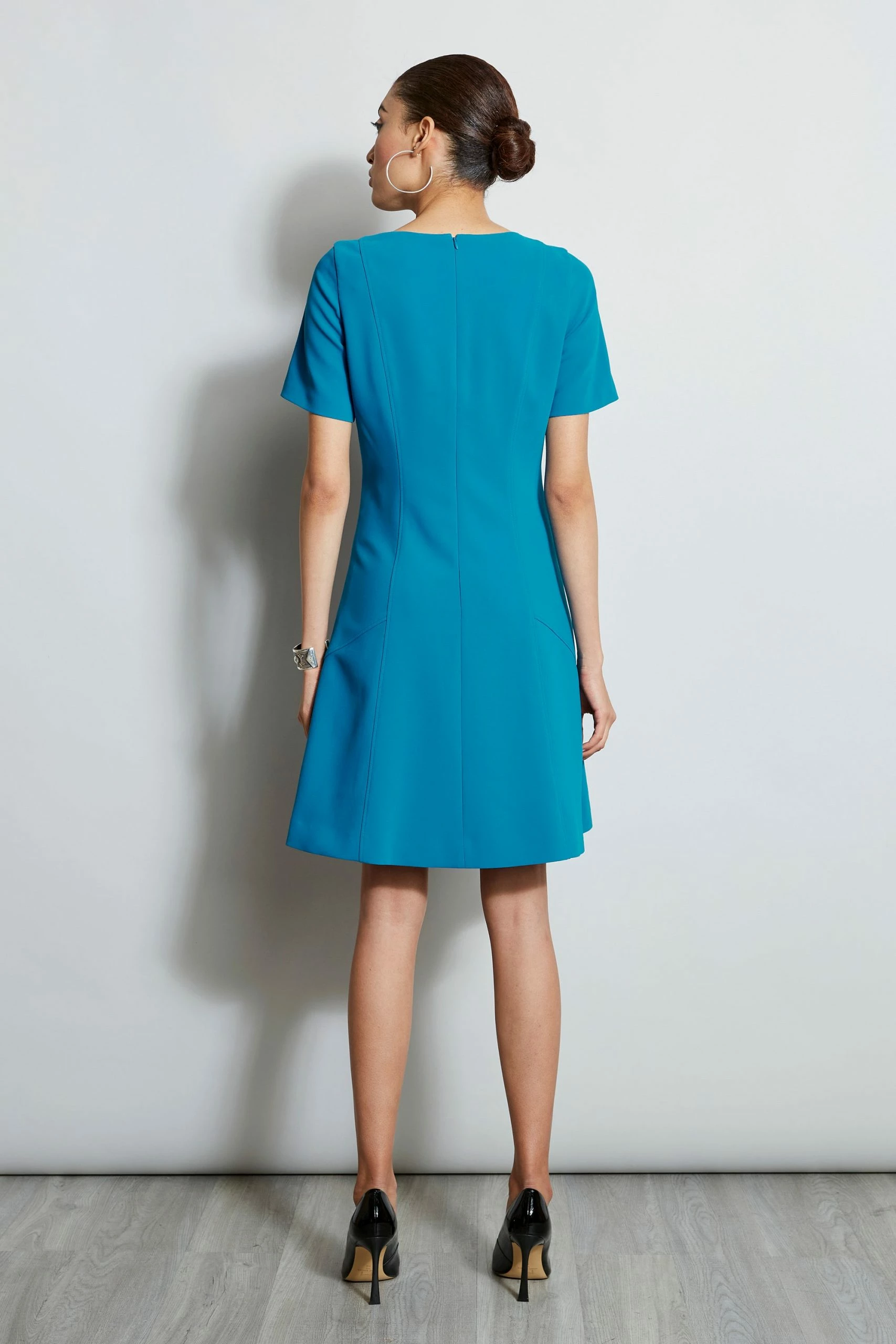 This is the season’s “IT” dress. Sporty & Chic, the fit and flare silhouette, defined seams and graphic zipper detail will make it your next favorite dress. Perfect for day to dinner.