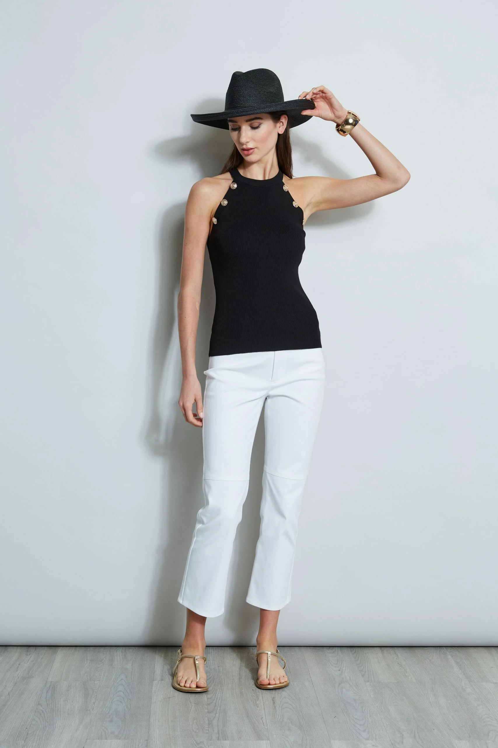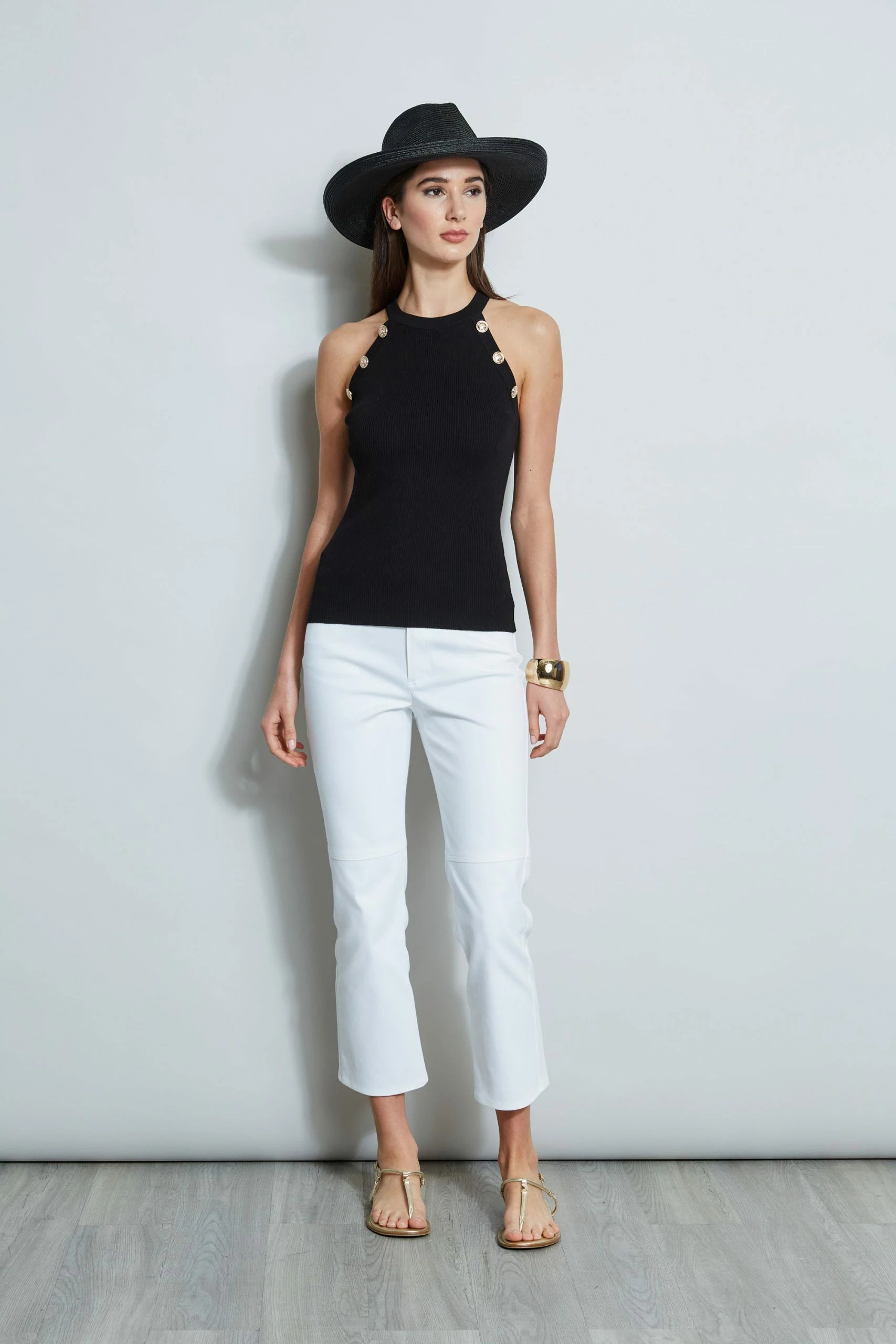 It’s all about the bold gold buttons that detail our Ribbed Halter Neck Knit. Perfect for wearing on its own with our Lace Palazzo Pants or Denim, this knit will become your go-to piece