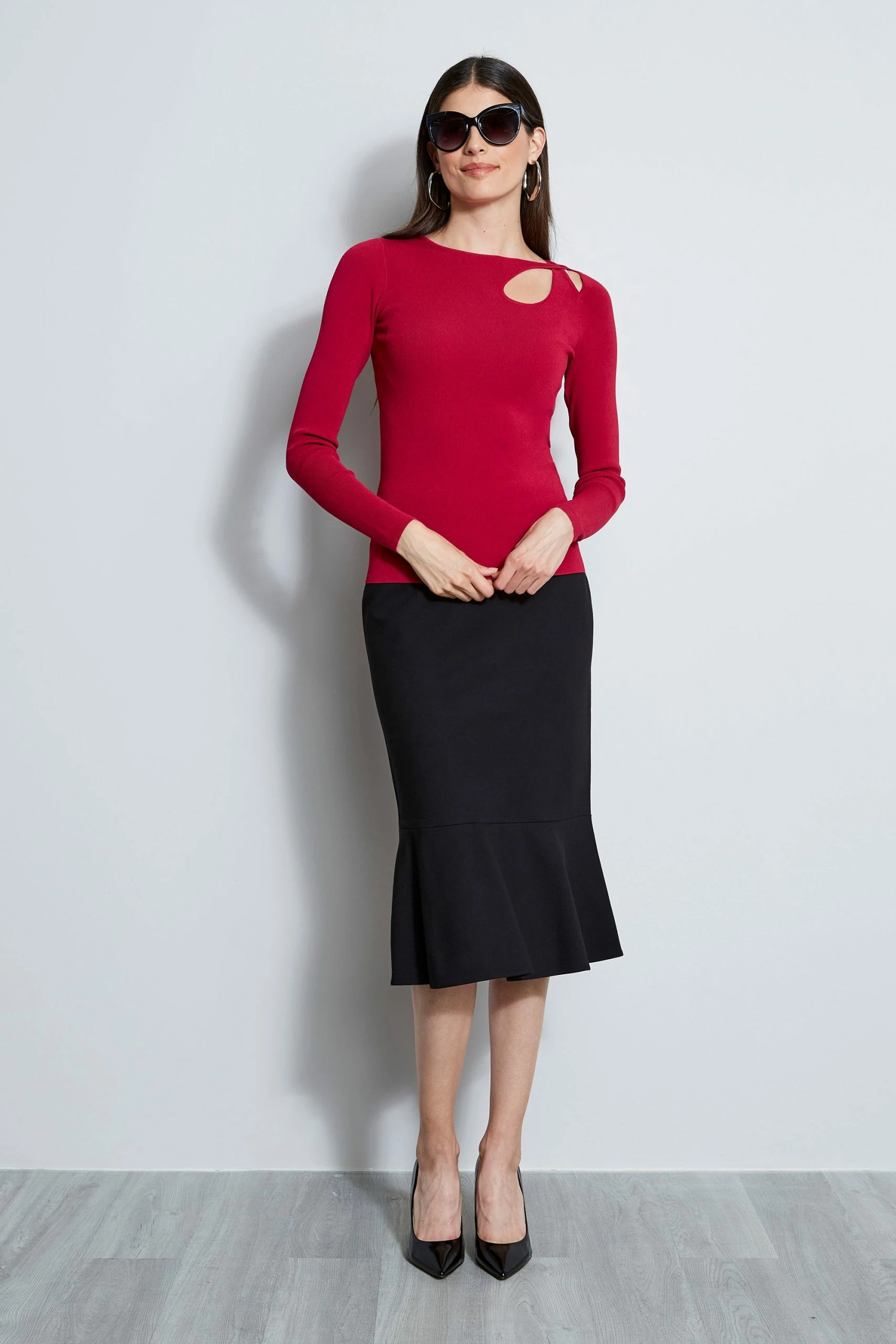 The modern keyhole neckline and ribbed stitch lend artistic expression to our Luxe Viscose Rib long sleeve Sweater. Dress it down with our Jeans or up with a pair of heels.Â