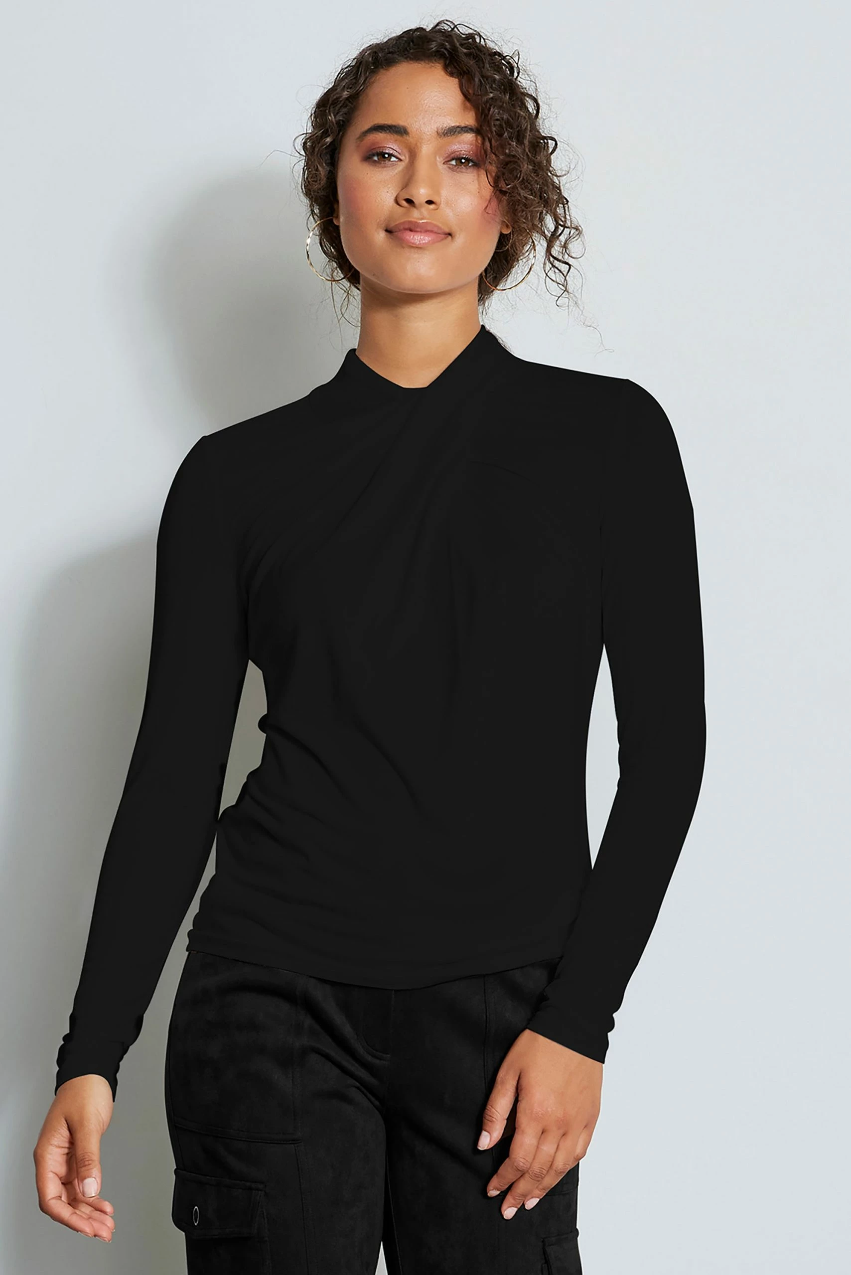 Casual chic, the twisted draped mock neck of our luxe Viscose Jersey creates a cool modern vibe that feels as good as it looks.