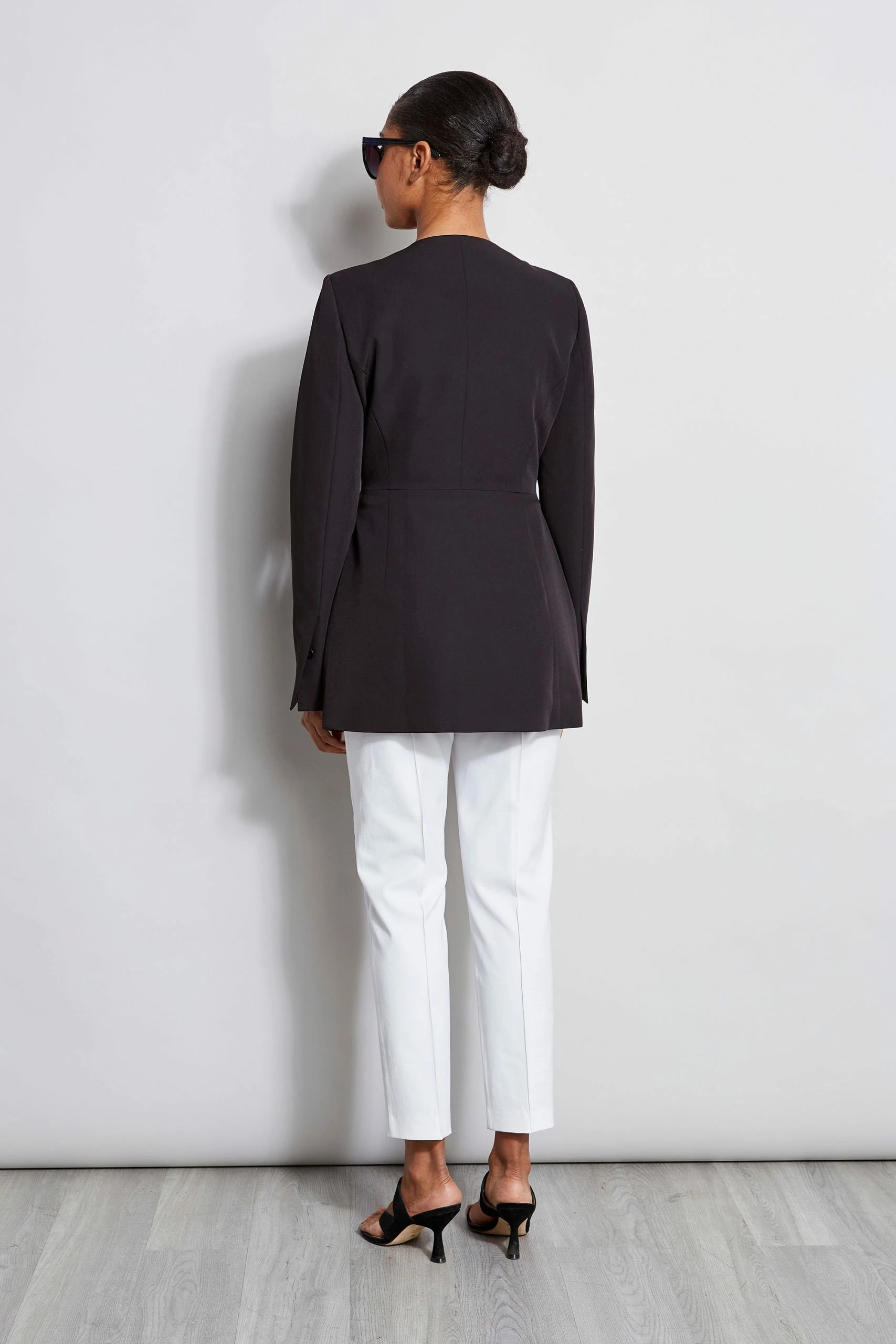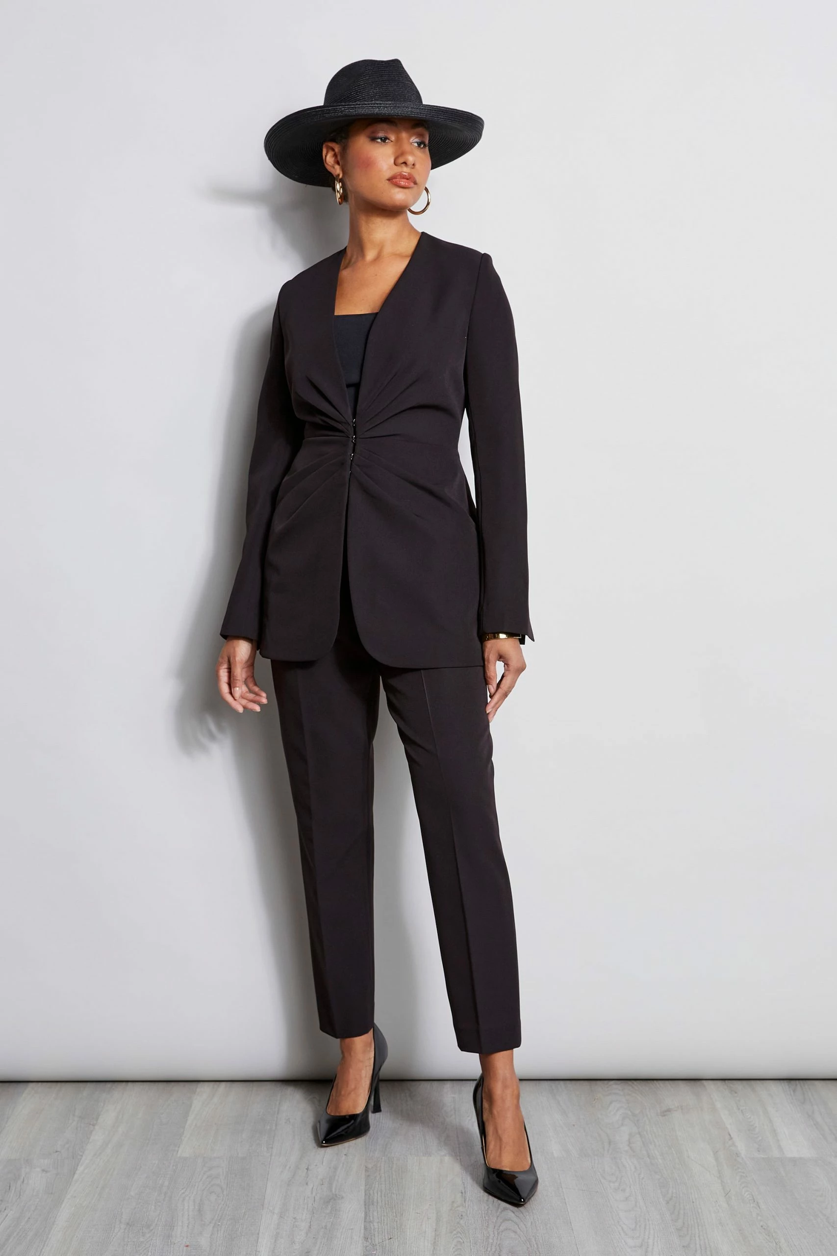 If the day calls for a sleek, modern look, this Pleat Detail Jacket is your go-to. With clasp closures, the front pleats accentuate the waist, while the slightly longer length has the cool factor you are looking for in your next favorite blazer.