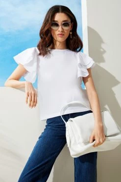 Tiered Flutter Sleeve Cotton Shirt