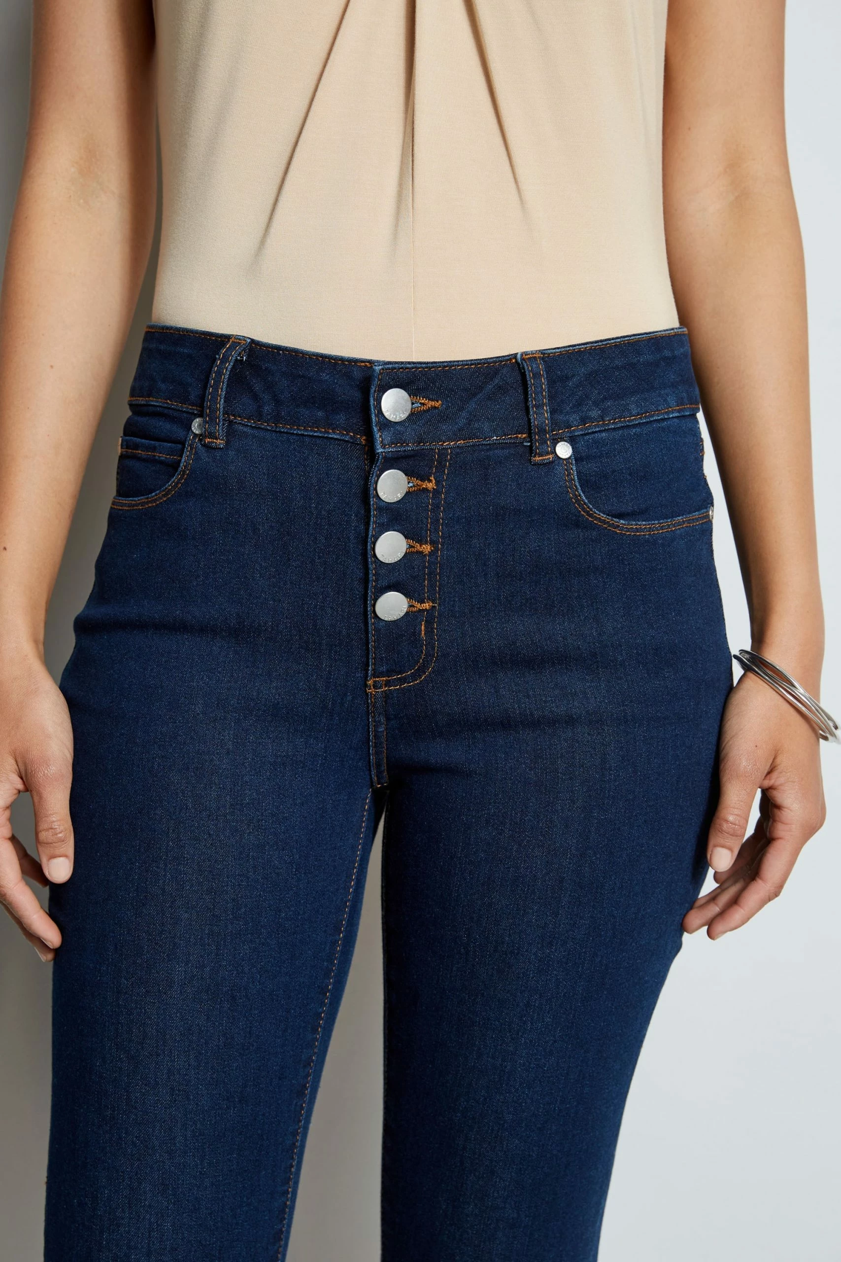 Update your Jean closet with our Four Button Denim Jeans. Ankle Grazing in a soft touch stretch Denim, they add the right amount of comfort to your day to night look.