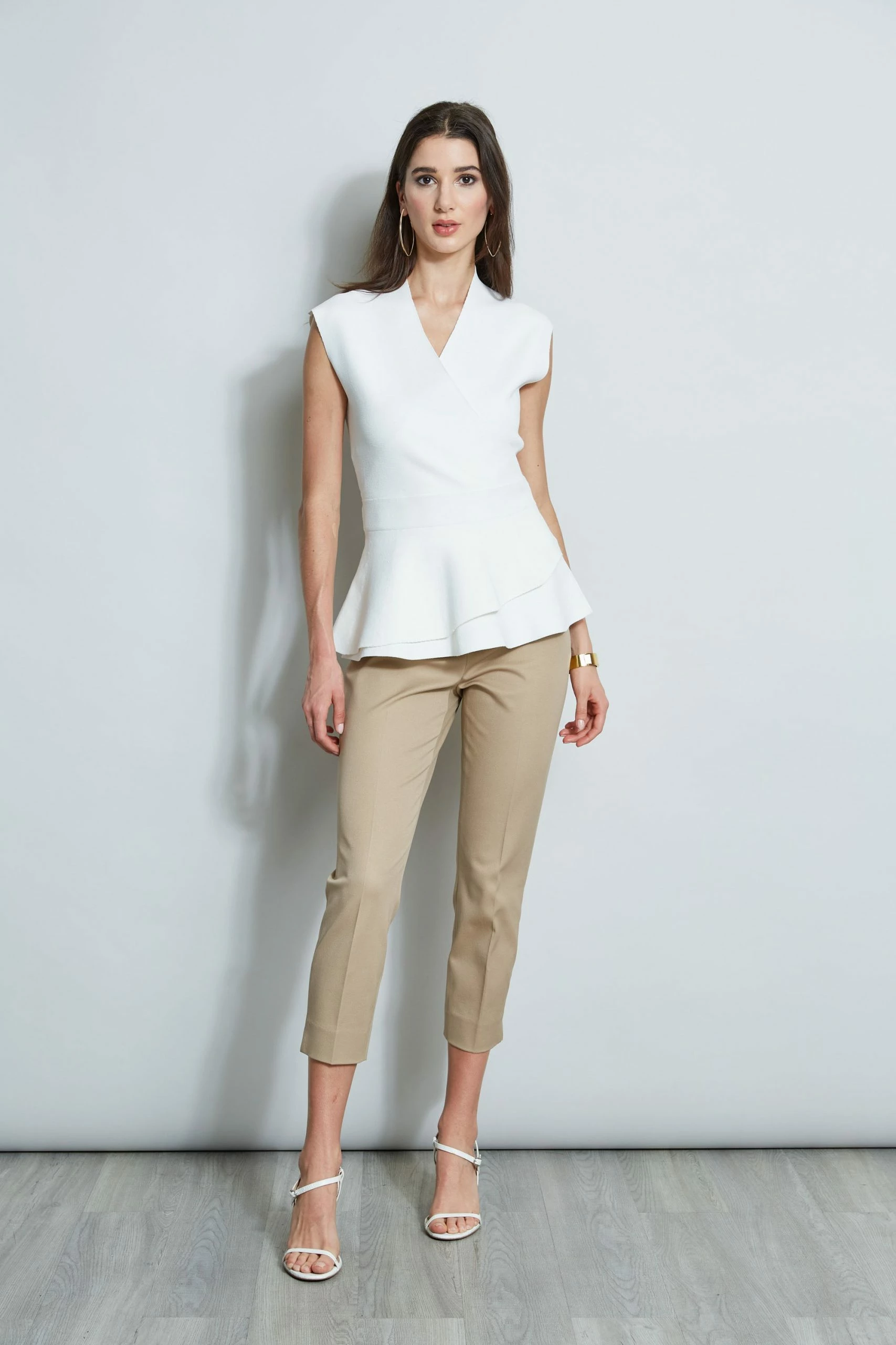 Our Wrap Peplum Sweater is a modern knit option to add to your summer wardrobe. The Faux wrap neckline and fitted waist lead the eye to the feminine flounce peplum.Â